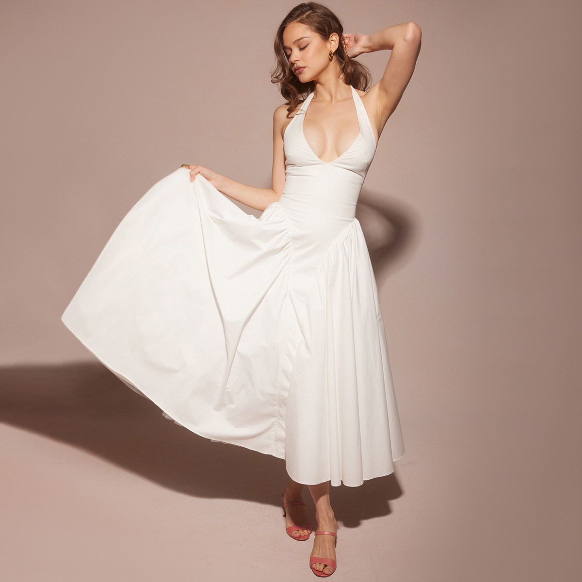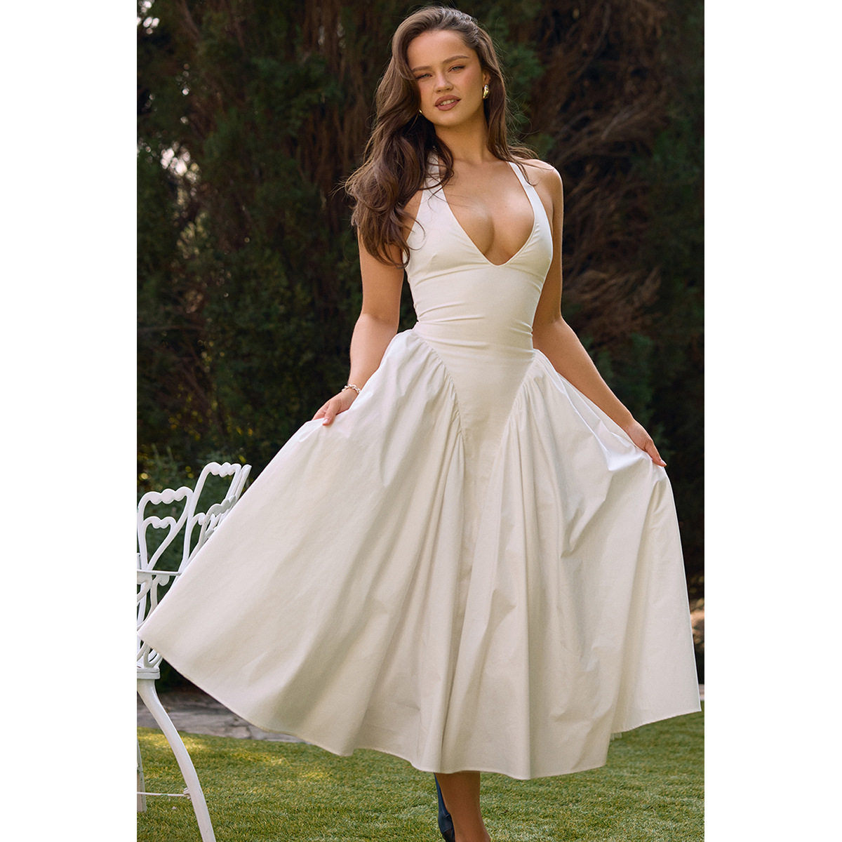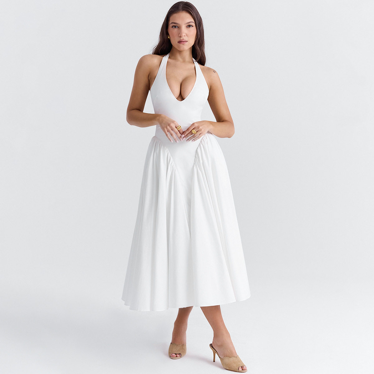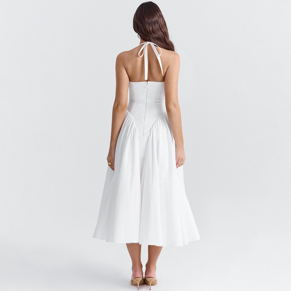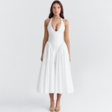 Элегантная юбка в складку, брендовое сексуальное платье большого размера, европейский стиль, с открытой спиной