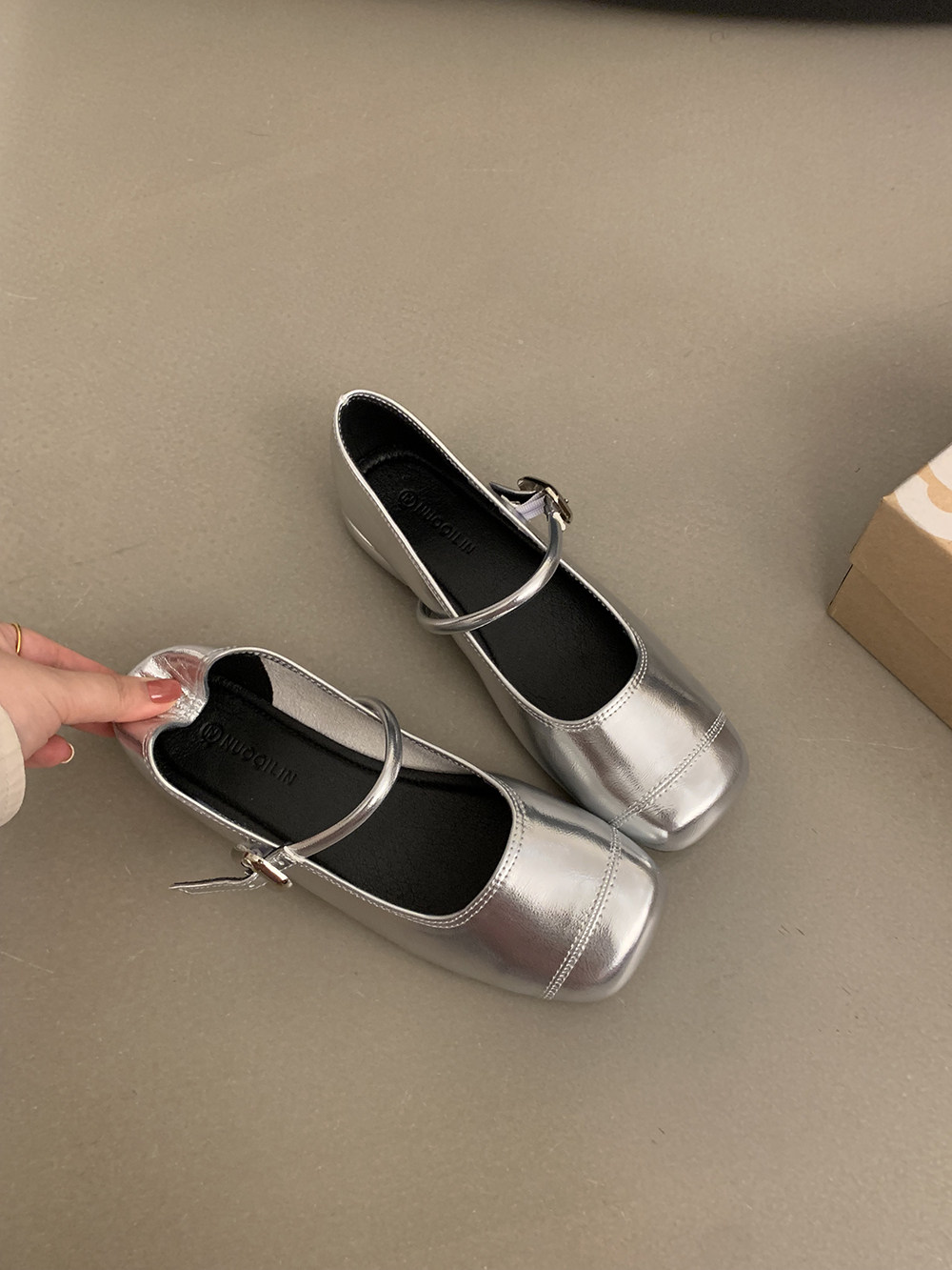 Серебряная летняя обувь для кожаной обуви с низким вырезом, в корейском стиле, французский стиль