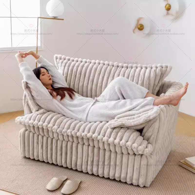 Скандинавский вельветовый ткань для маленькой квартиры, большой односпальный диван кремового цвета, ленивый балкон, двойной диван