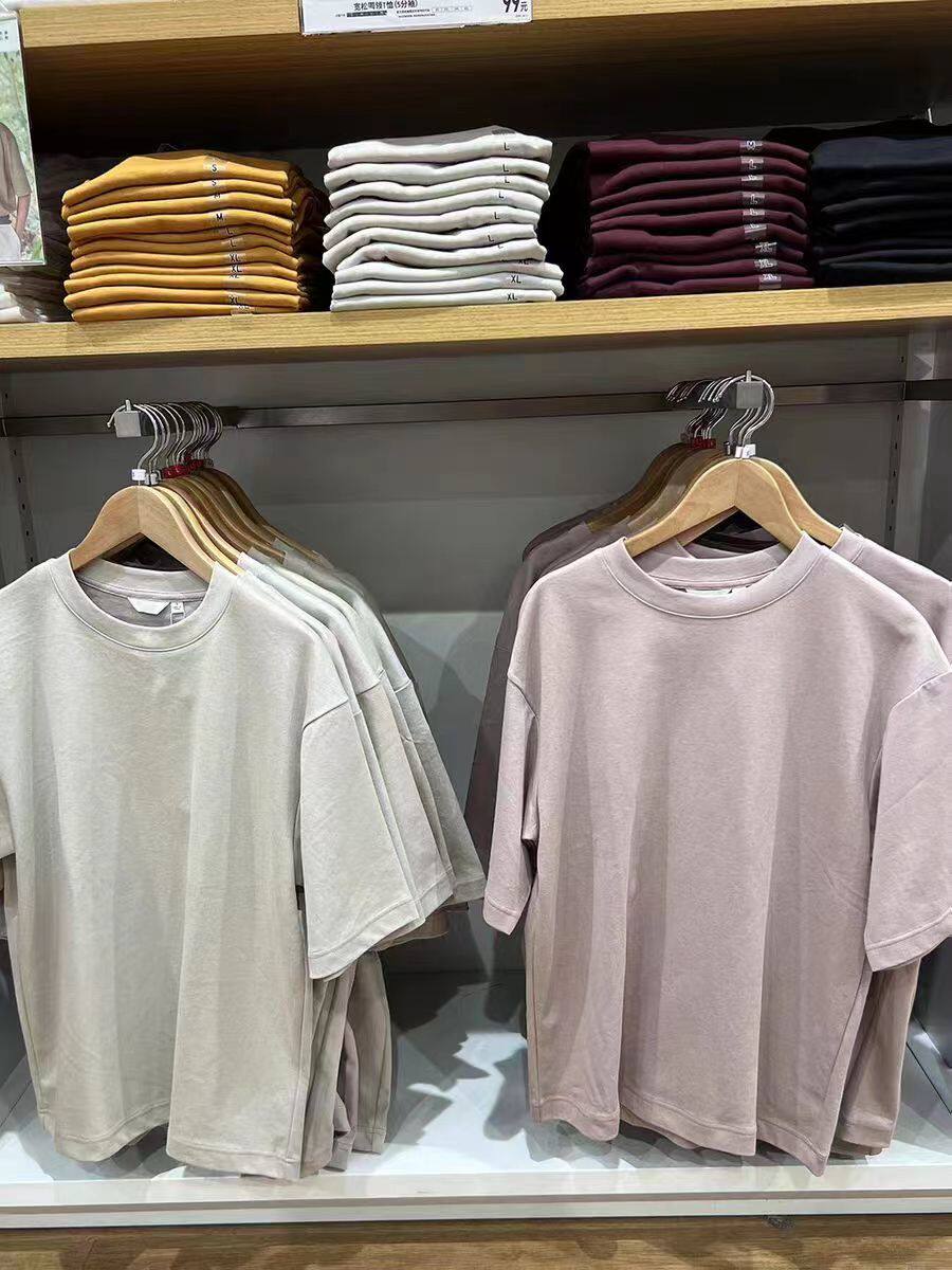 Чун Юань!U Home Летняя мужская однотонная свободная футболка AIRism с круглым вырезом и рукавом пять четвертей 465185