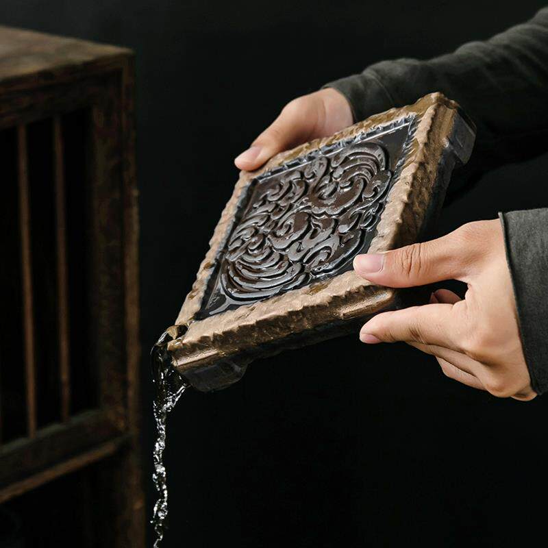Позолоченная ретро -керамическая чайная тарелка сухой пузырьковая тарелка японская ставка чайника, чтобы поддерживать подушку для горшки подушки для хранения воды Небольшой чайный стол