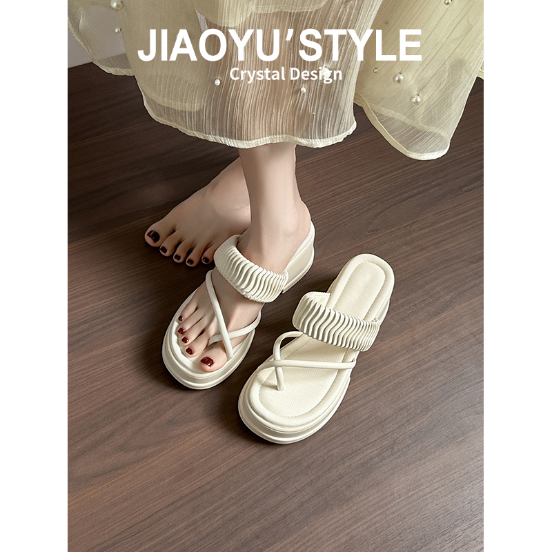 Слайдеры на платформе, летние тапочки, пляжная обувь на высоком каблуке, туфли, из натуральной кожи, пляжный стиль