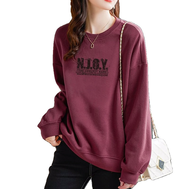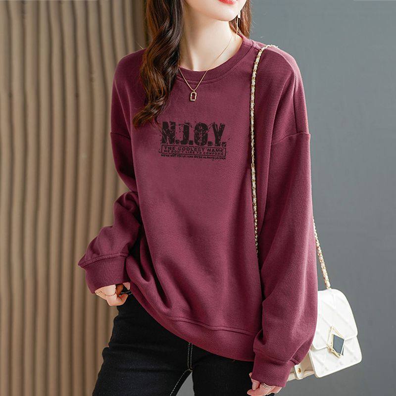 Ретро бордовый демисезонный свитшот с круглым воротником, лонгслив, оверсайз