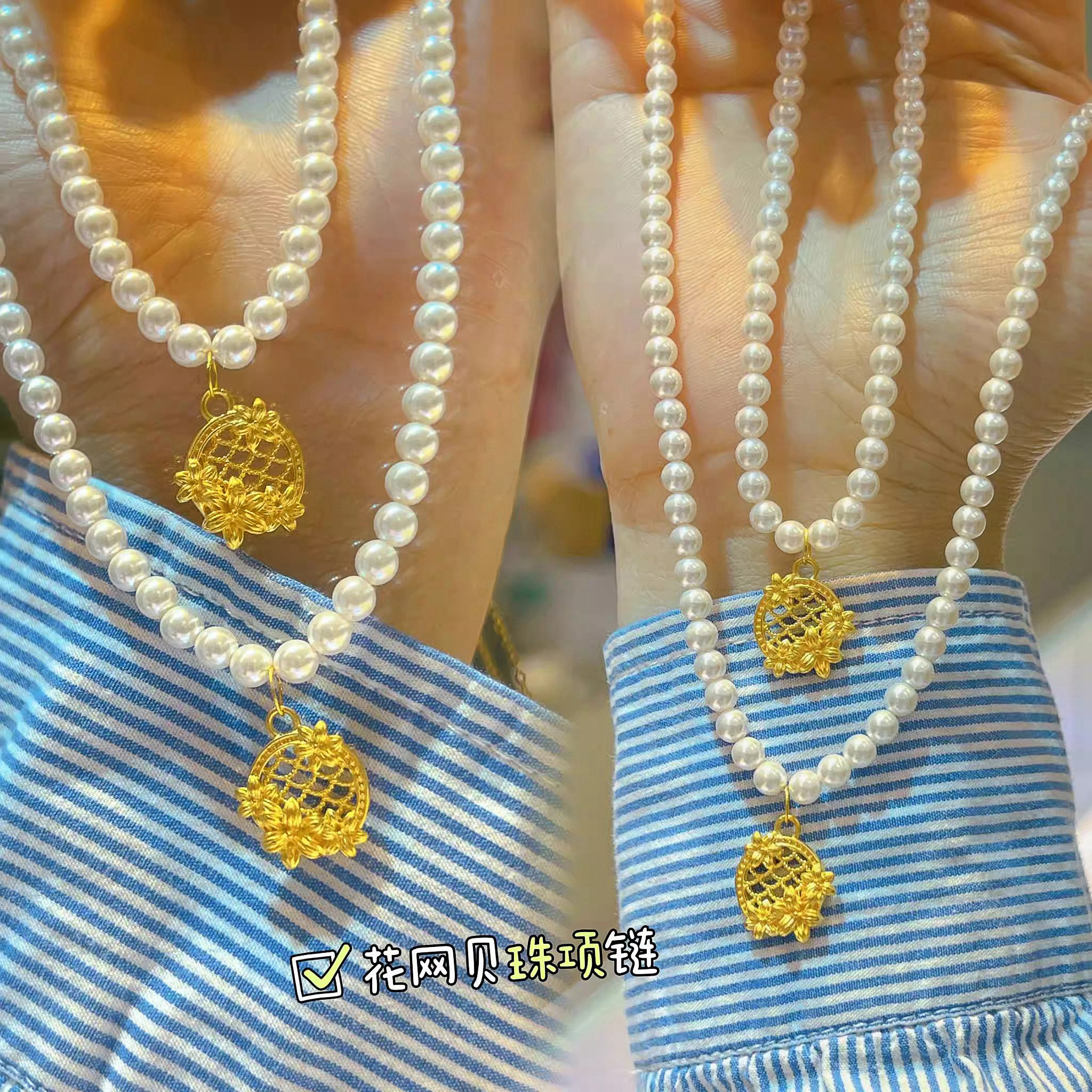 Золотое ожерелье из жемчуга, цепочка, подвеска для матери, Гонконг, изысканный стиль, подарок на день рождения