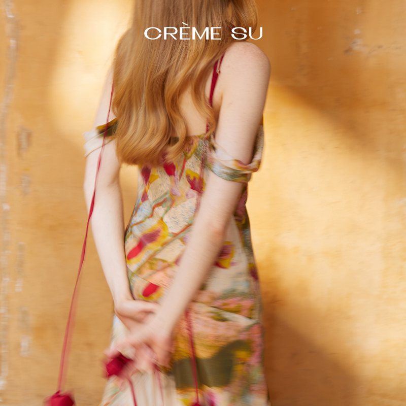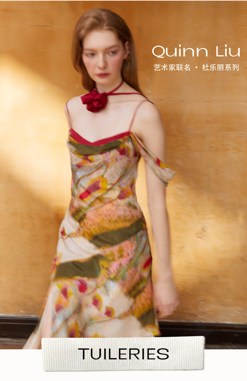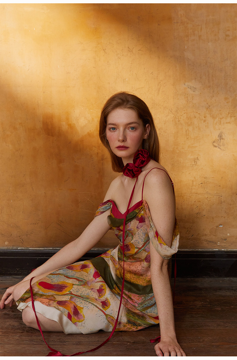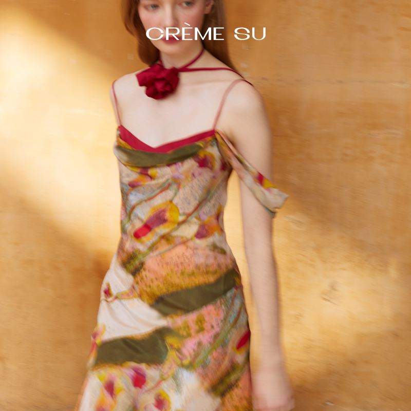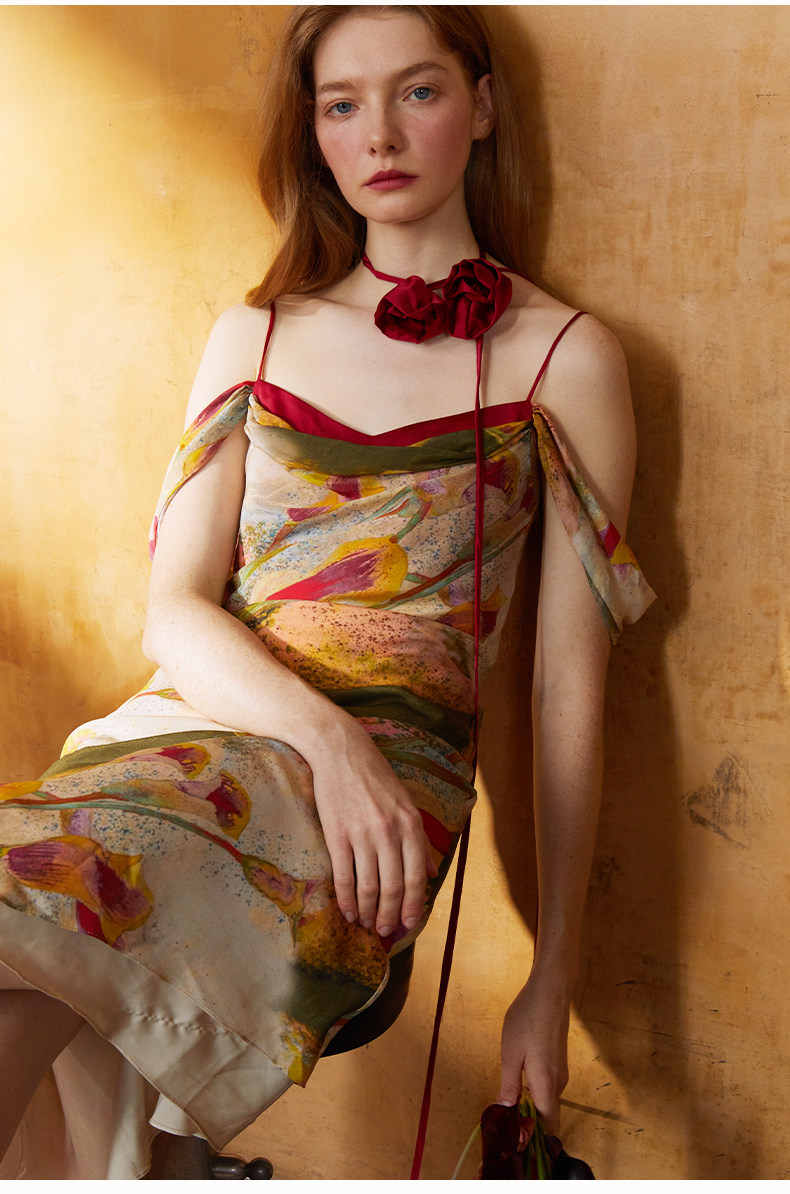 CremeSu Шелковое платье совместного бренда Art, ограниченная серия, праздничное платье серии Tuileries с ручной росписью и принтом каллы.