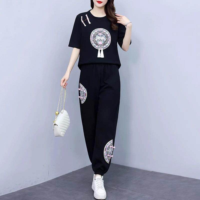LILY MOST Летний комплект, футболка, штаны, китайский стиль, оверсайз, по фигуре