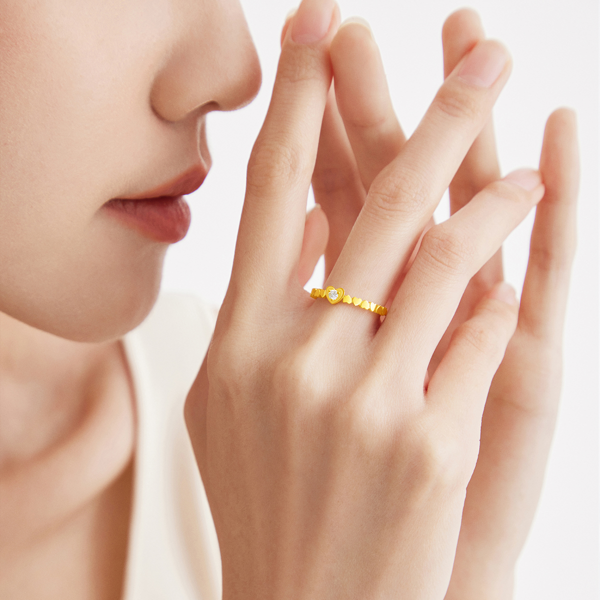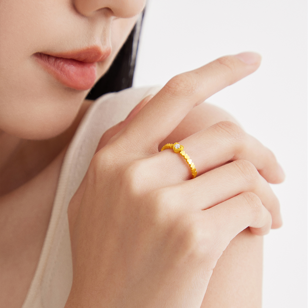 周大福 Золотое кольцо с драгоценными камнями для друга, подарок для девушки