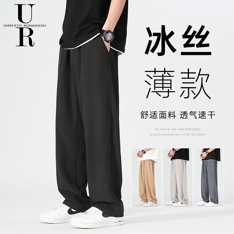 Мужские шелковые летние тонкие быстросохнущие дышащие штаны для отдыха, оверсайз, в американском стиле, свободный прямой крой