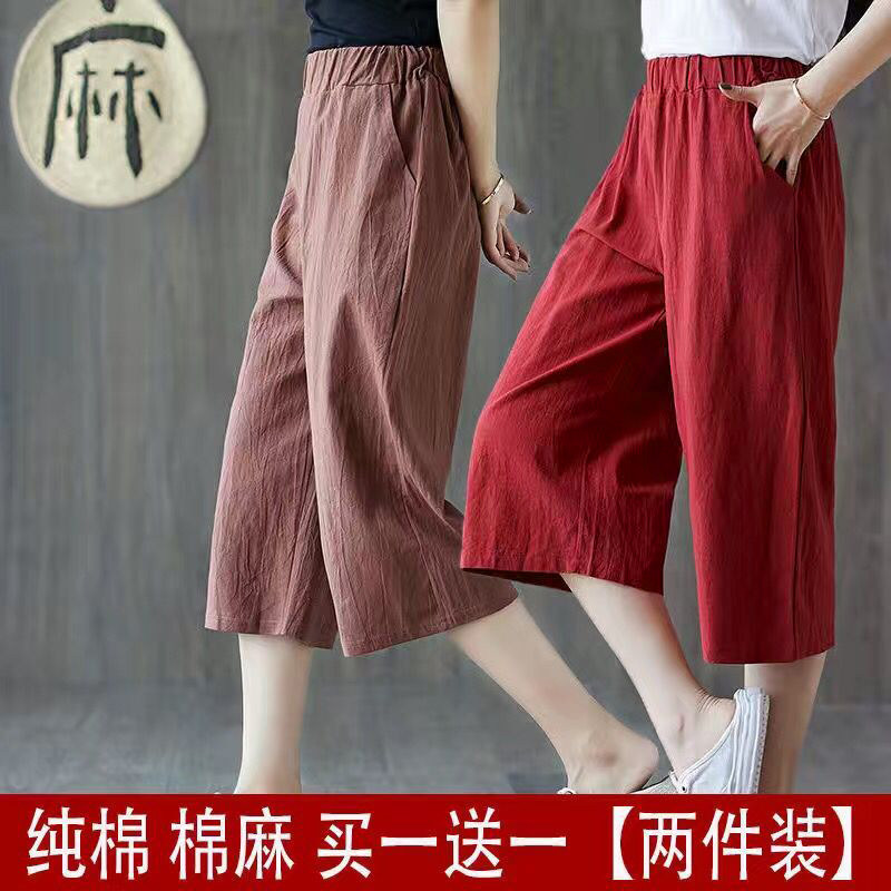 Хлопковый комплект, летние штаны, из хлопка и льна, большой размер, оверсайз, свободный прямой крой