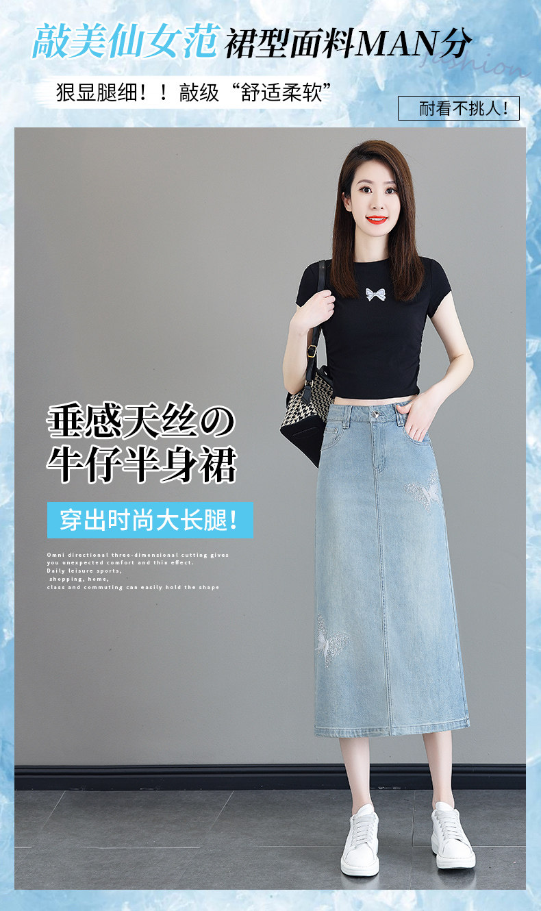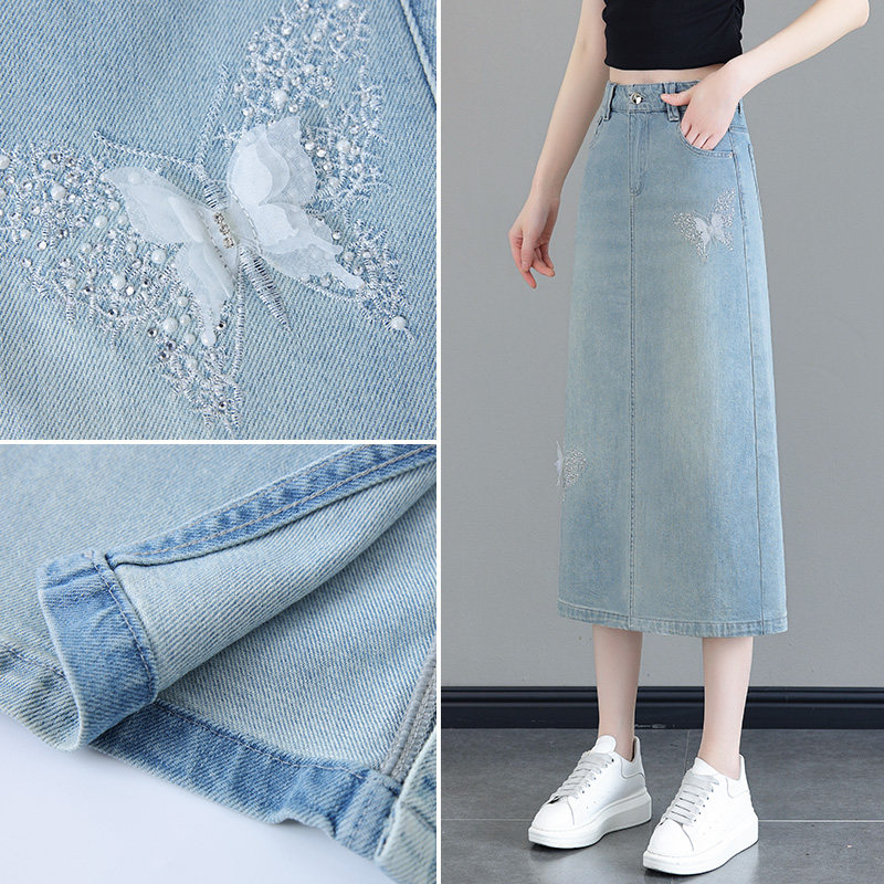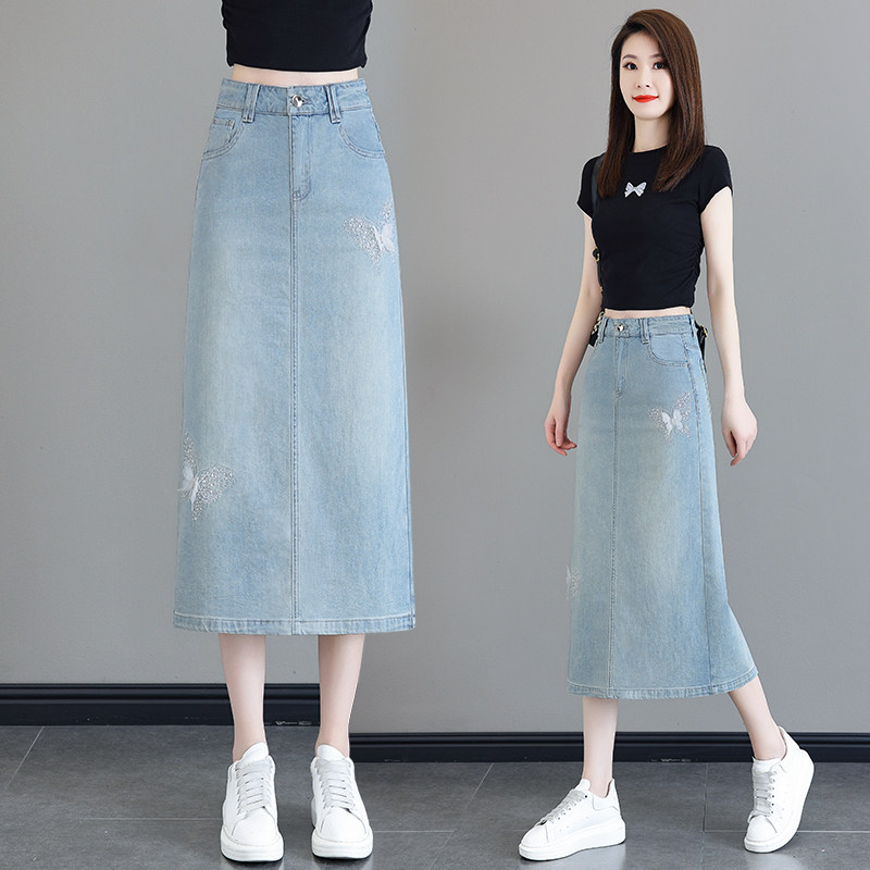 Светлая летняя тонкая длинная шелковая джинсовая юбка, 2026 года, высокая талия, средней длины