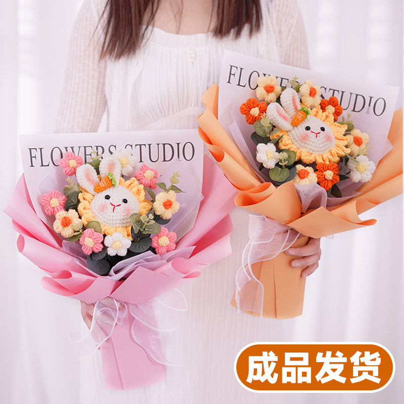 Вязаный букет на День защиты детей, вязаный букет своими руками, вязаный крючком цветок из шерсти, имитация цветка, готовое изделие