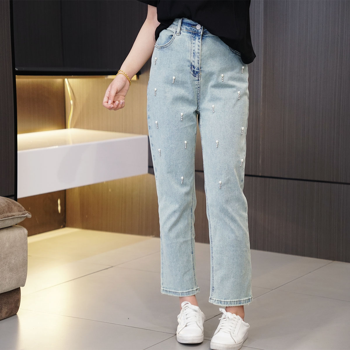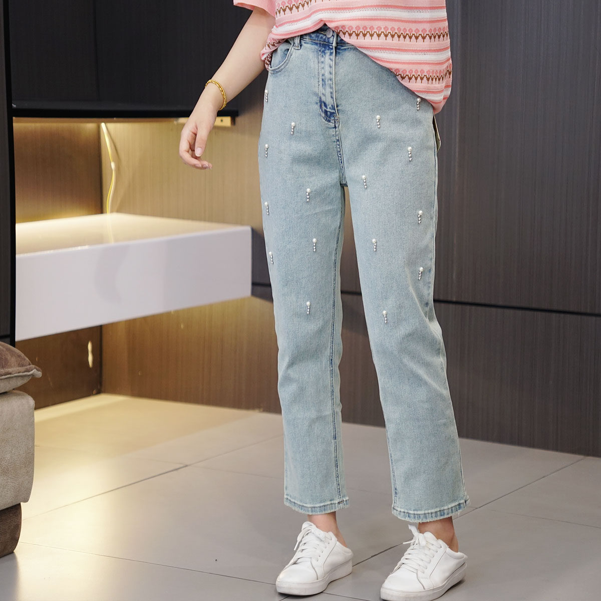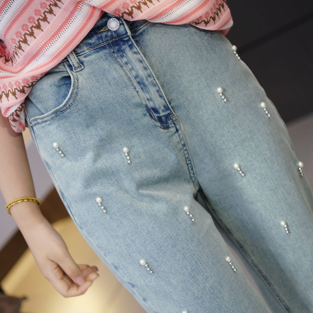 Летние модные джинсы, штаны, высокая талия, большой размер, подходит для полных девушек, свободный прямой крой
