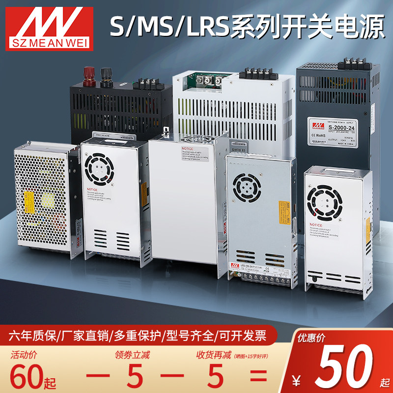 Блок питания Mingwei Switch S/MS/LRS-350/500 Mingwei AC220 до 24 В постоянного тока, 4000 Вт, высокая мощность, 48 В