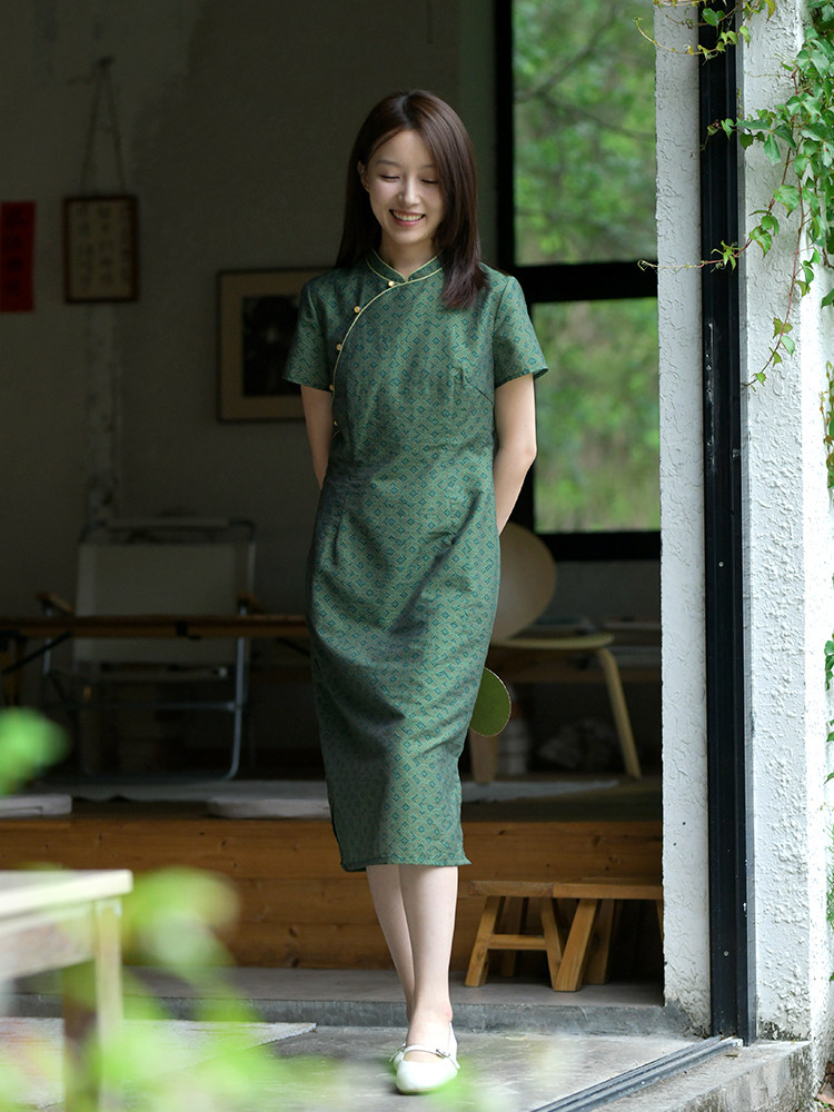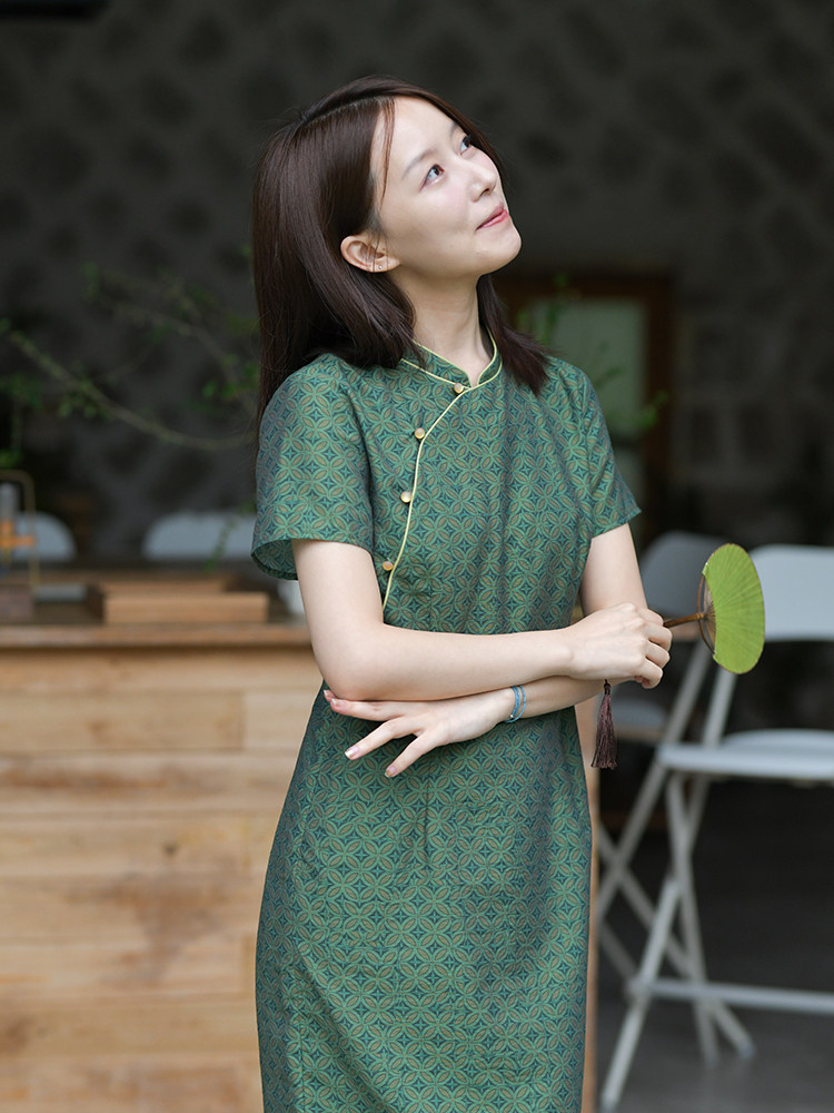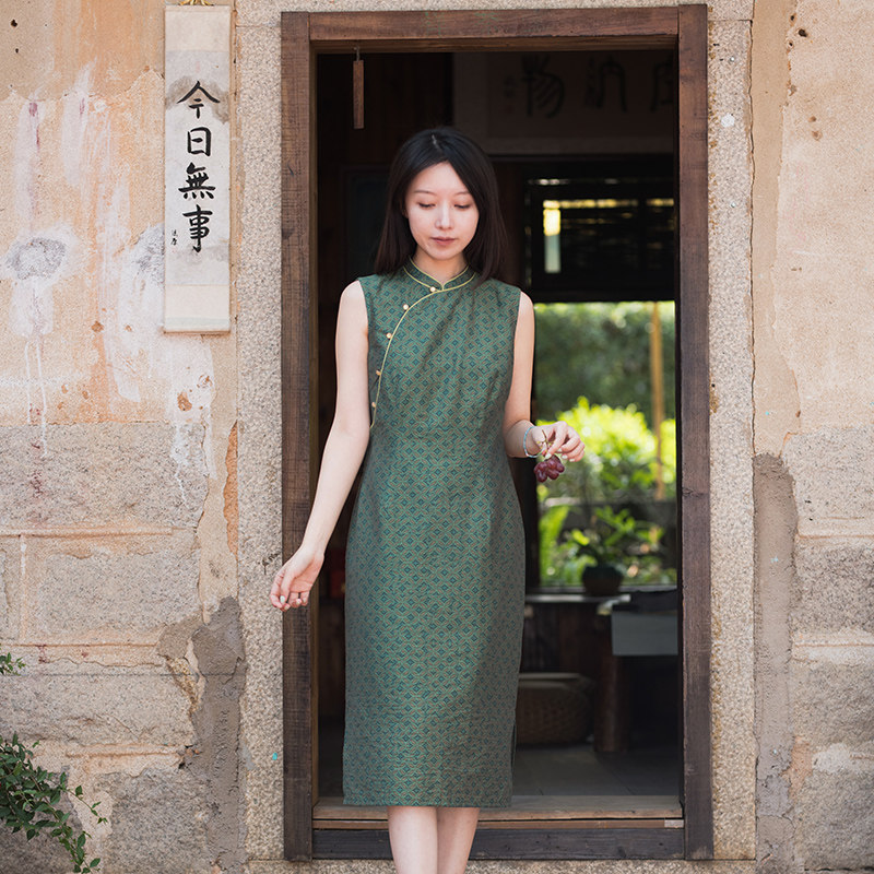 24CXC-247 [банановое дивизион зеленый] Ретро свет предыдущей жизни и этой жизни, ретро и шея без рукавов литературного принца Cheongsam Cheongsam