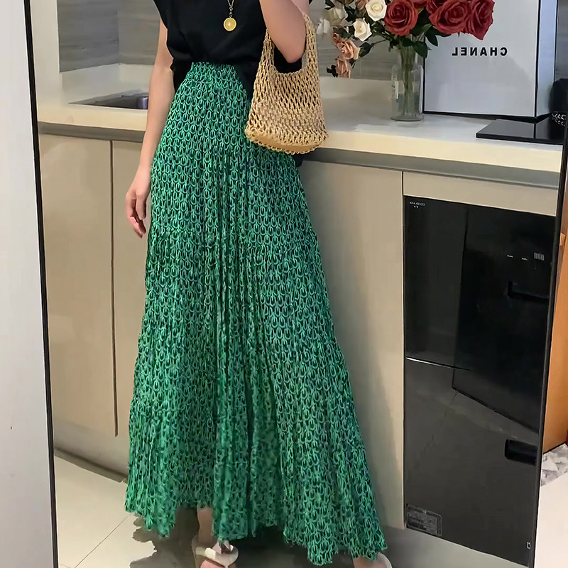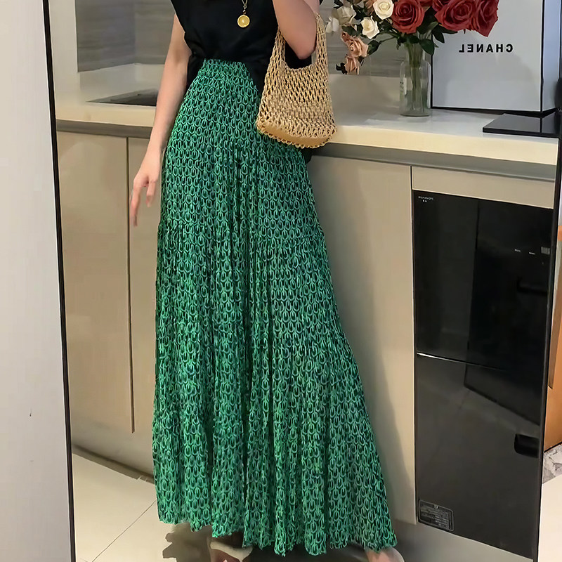 Летняя зеленая модная приталенная длинная юбка, высокая талия, длина макси