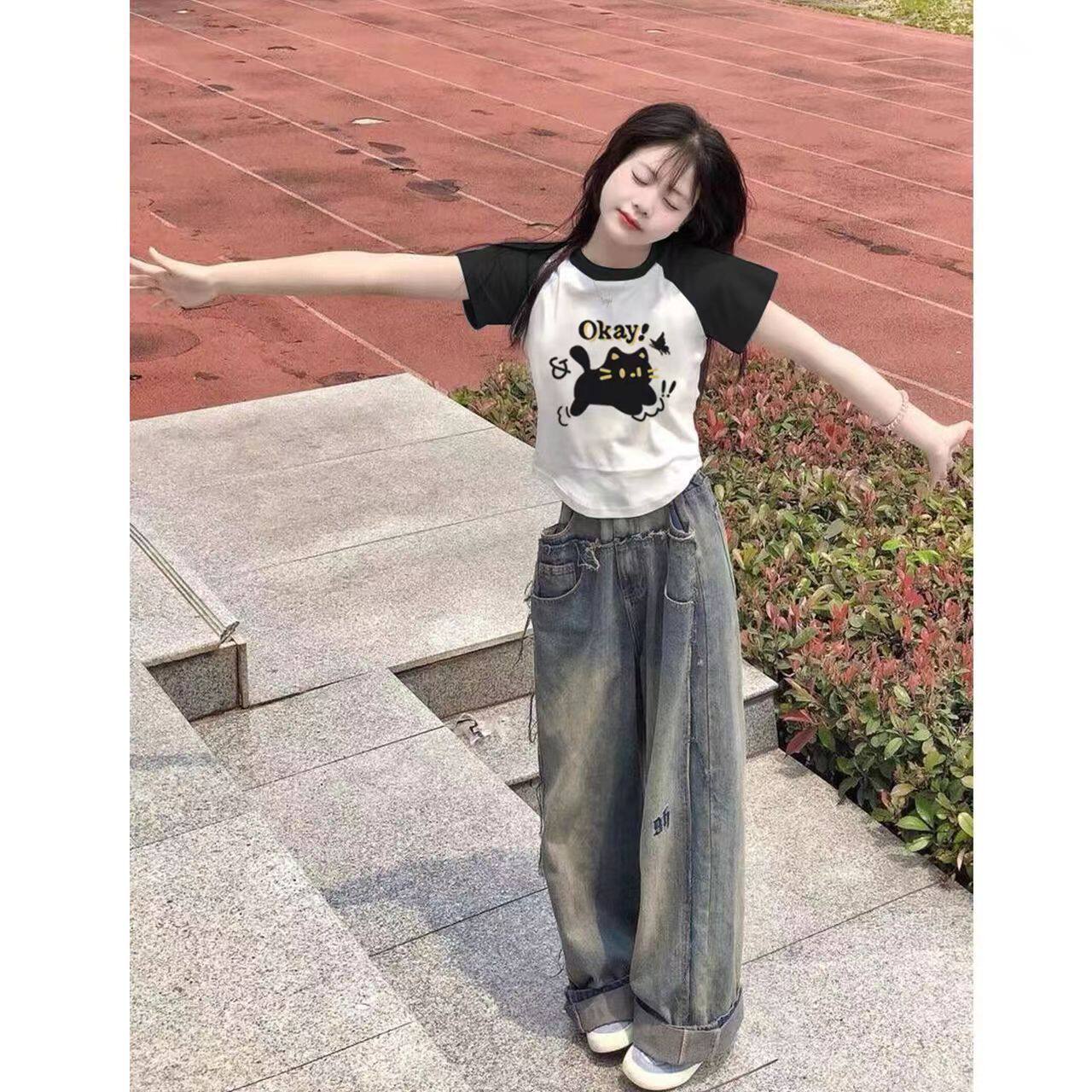 Летняя дизайнерская ретро короткая приталенная футболка с коротким рукавом, городской стиль, тренд сезона, в американском стиле