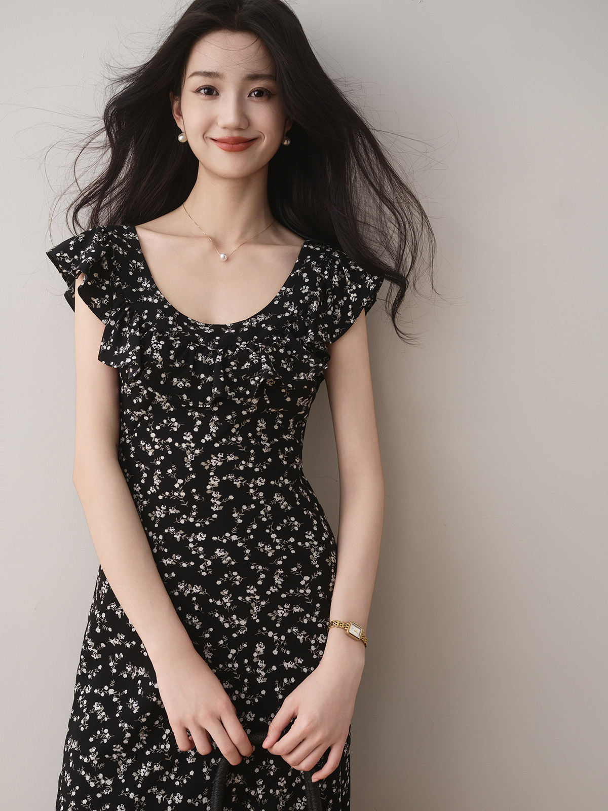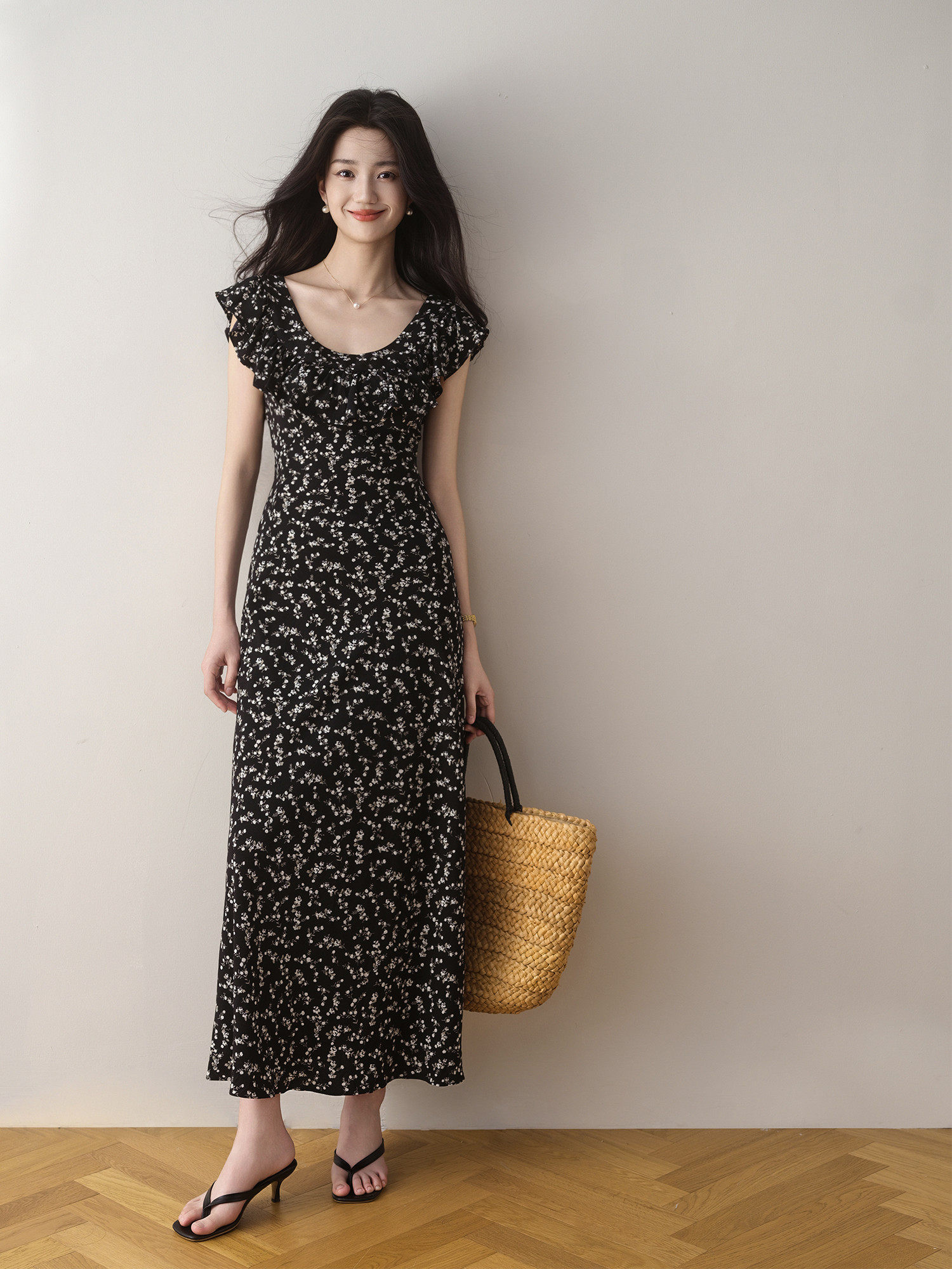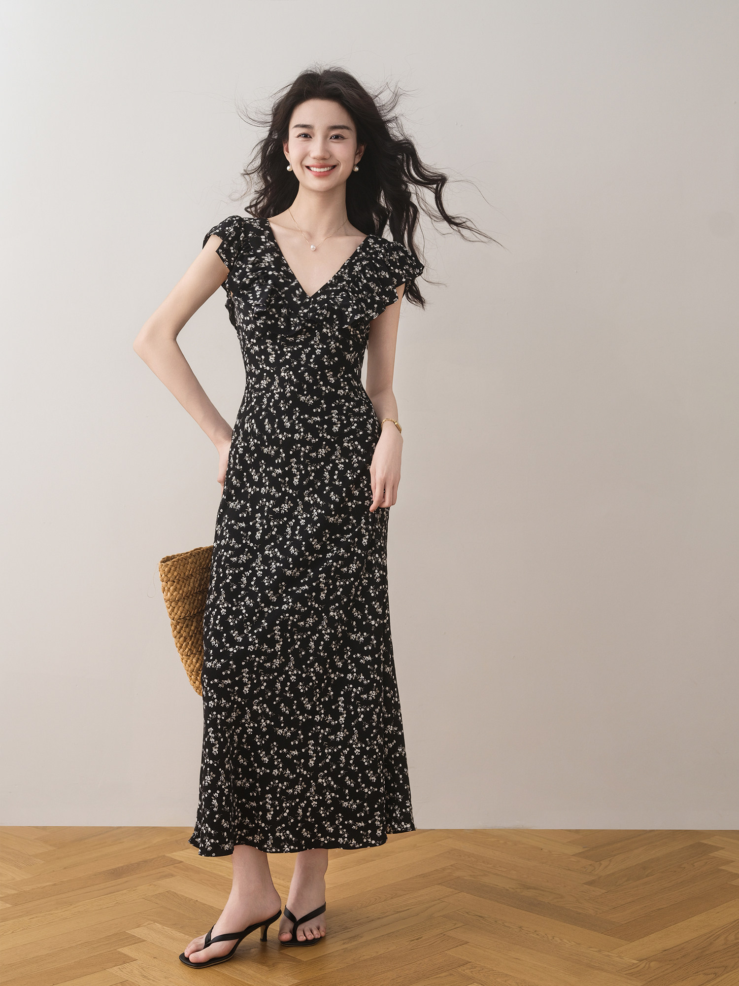 Летнее приталенное платье, французский стиль, в цветочек