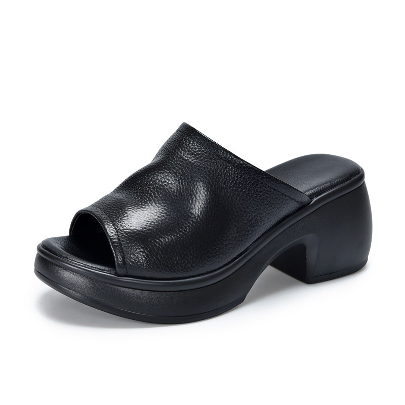 Сандалии для отдыха на платформе, тапочки для матери, слайдеры, из натуральной кожи