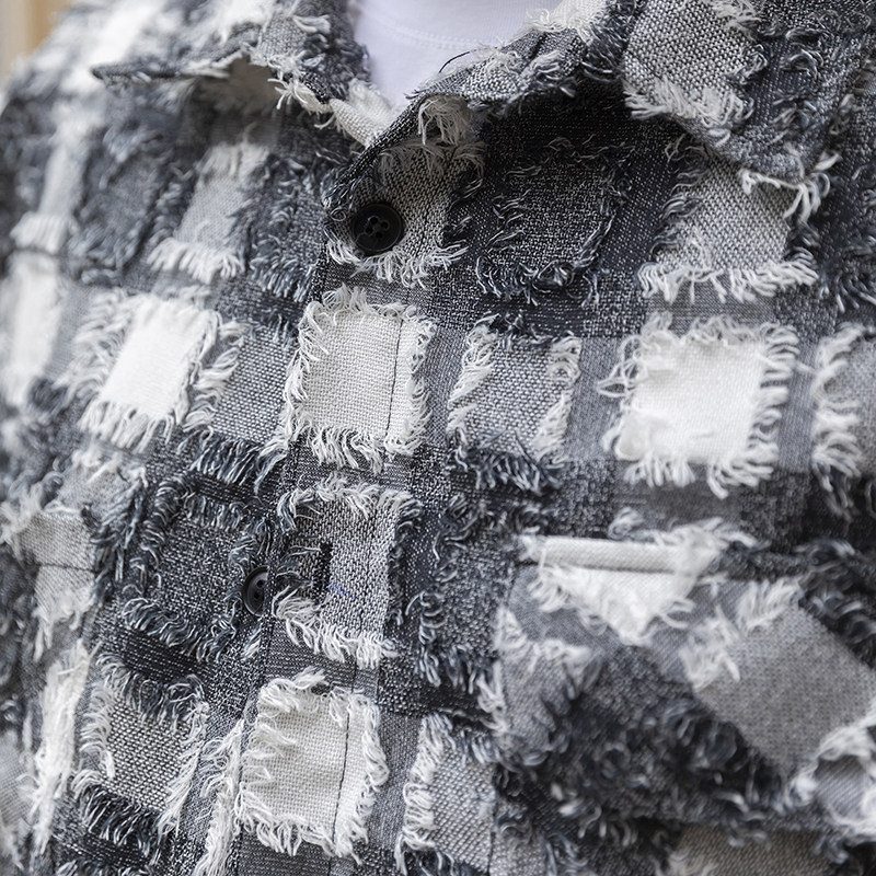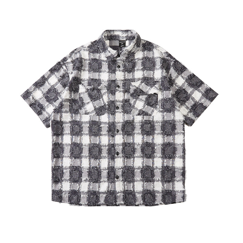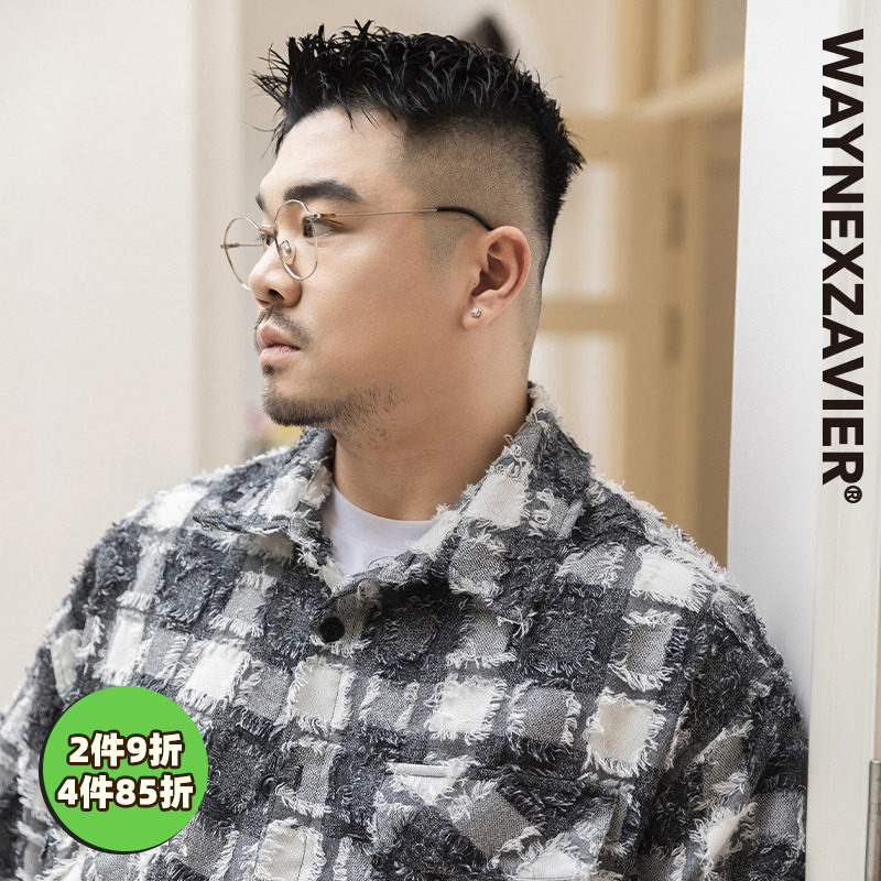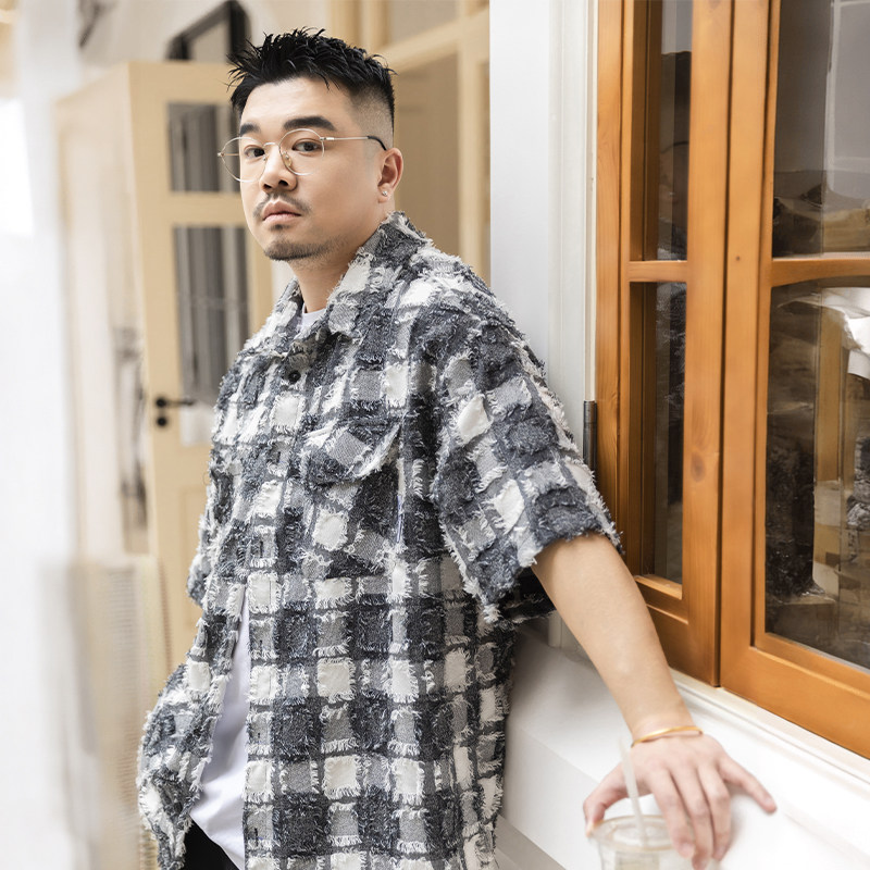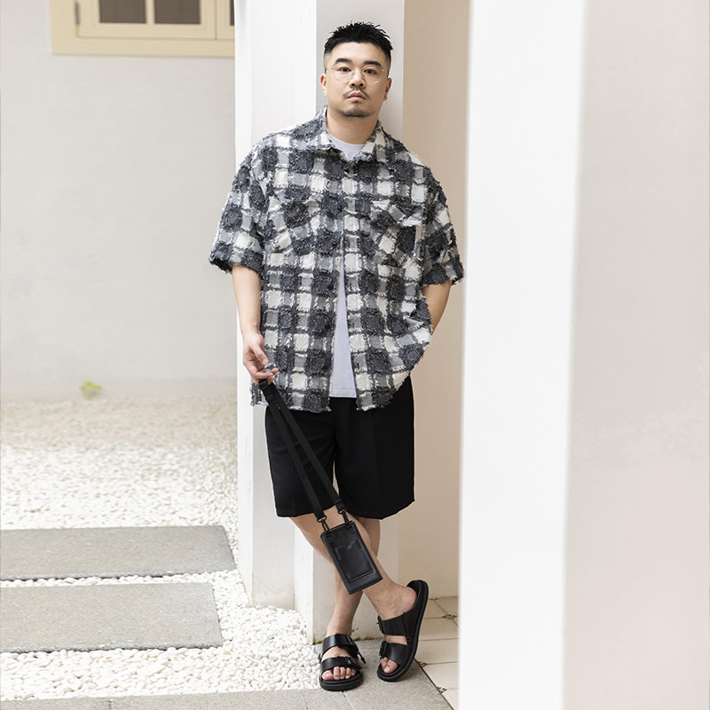 Wenenzeville большого размера прилив мужская одежда для мужской одежды плюс удобрения Увеличивает летнюю черно -белую клетчатую сетку рубашку ретро 8795