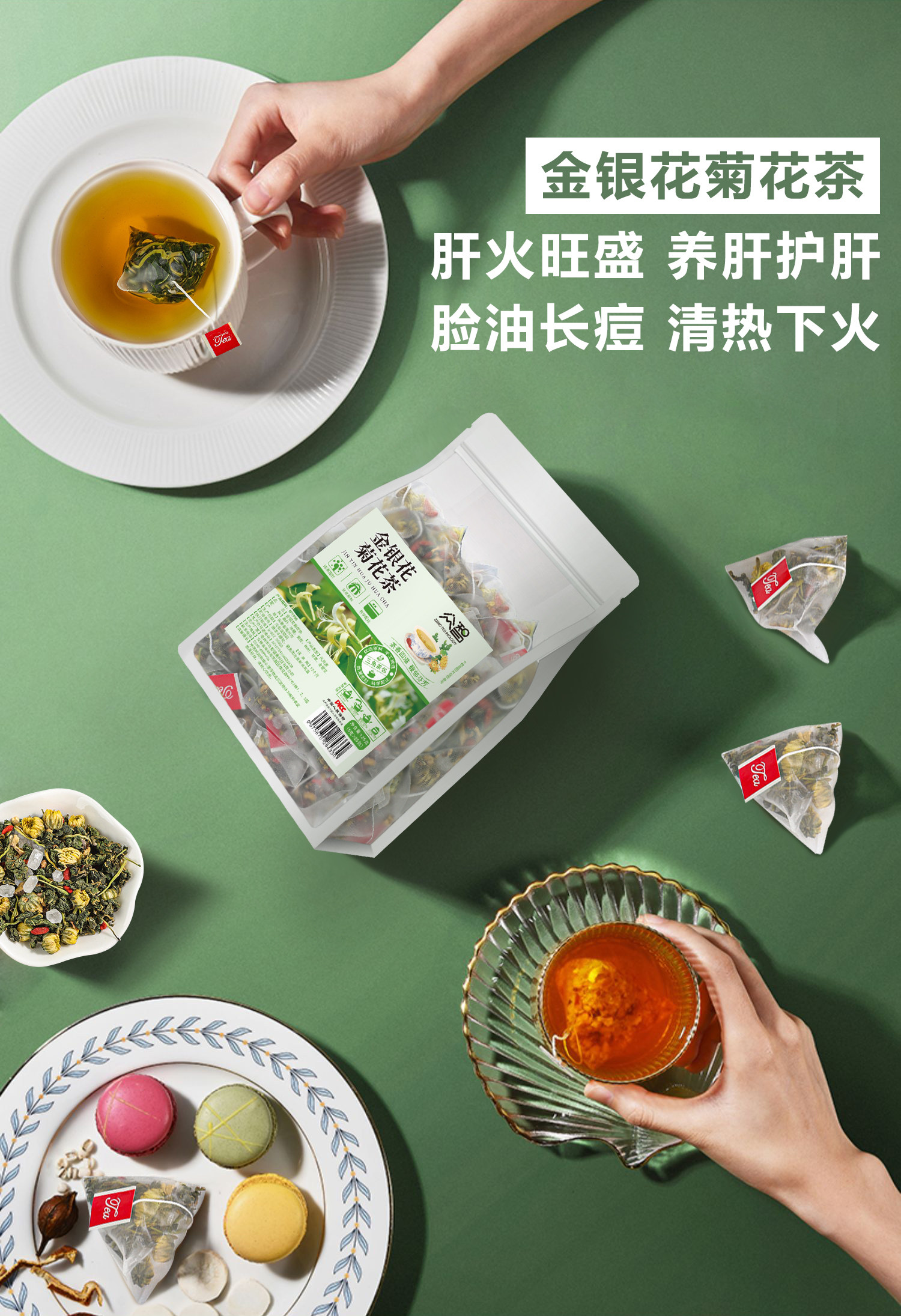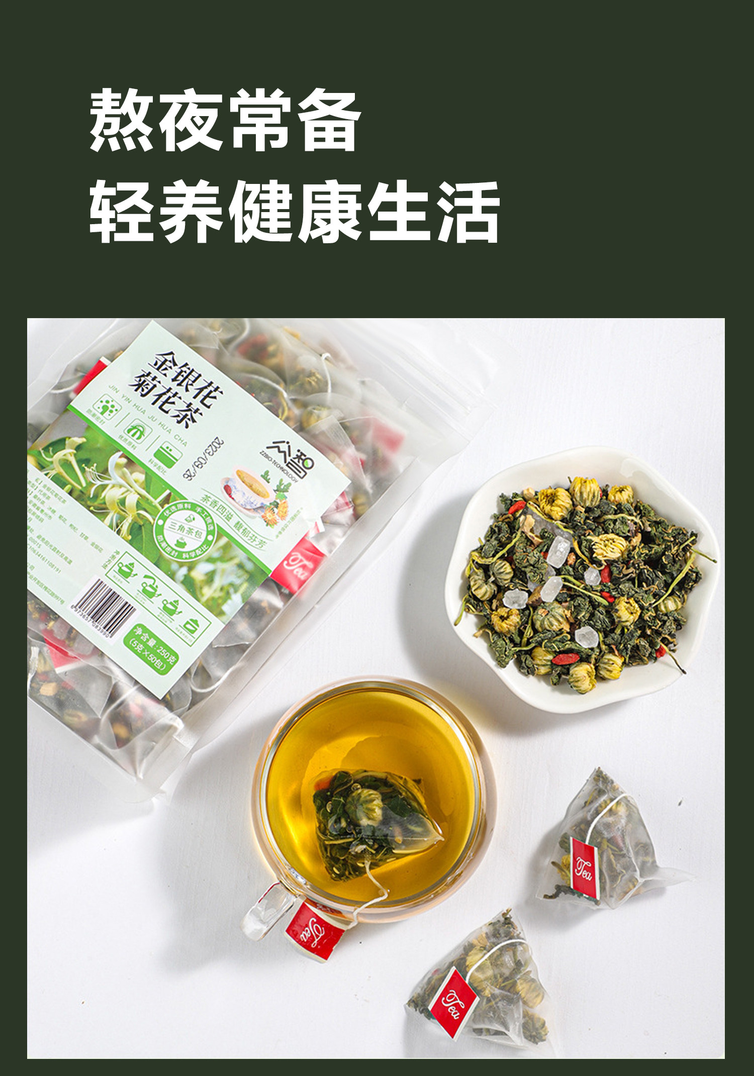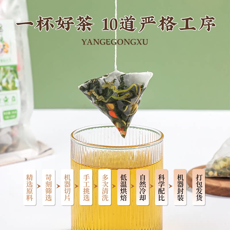 Золотая и серебряная цветочная хризантема, чайный пакет Wolfberry, солодка, чтобы очистить тепло, чтобы очистить тепло, не подчинитесь поздно, огонь печени, цветок здоровья, травяная чайная треугольник Небольшая упаковка