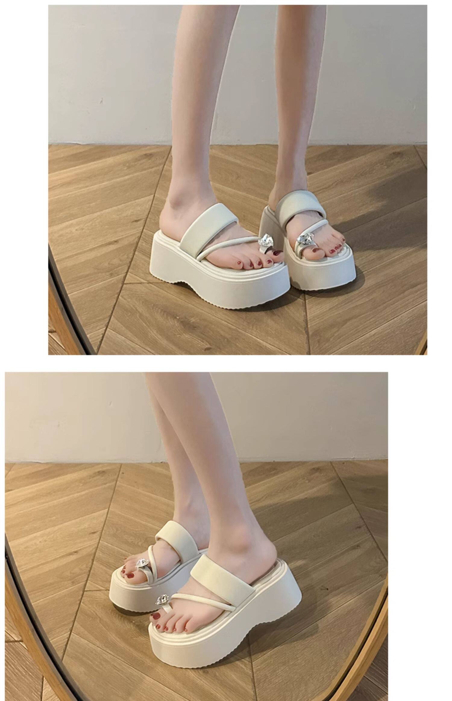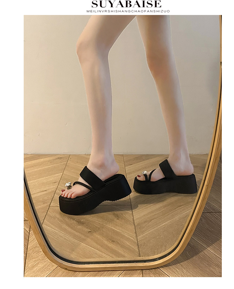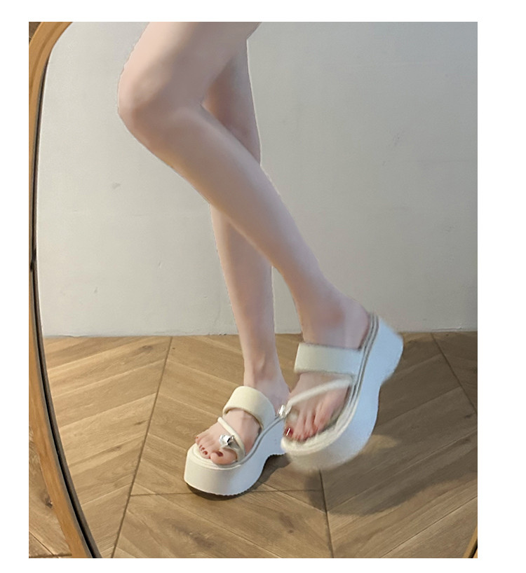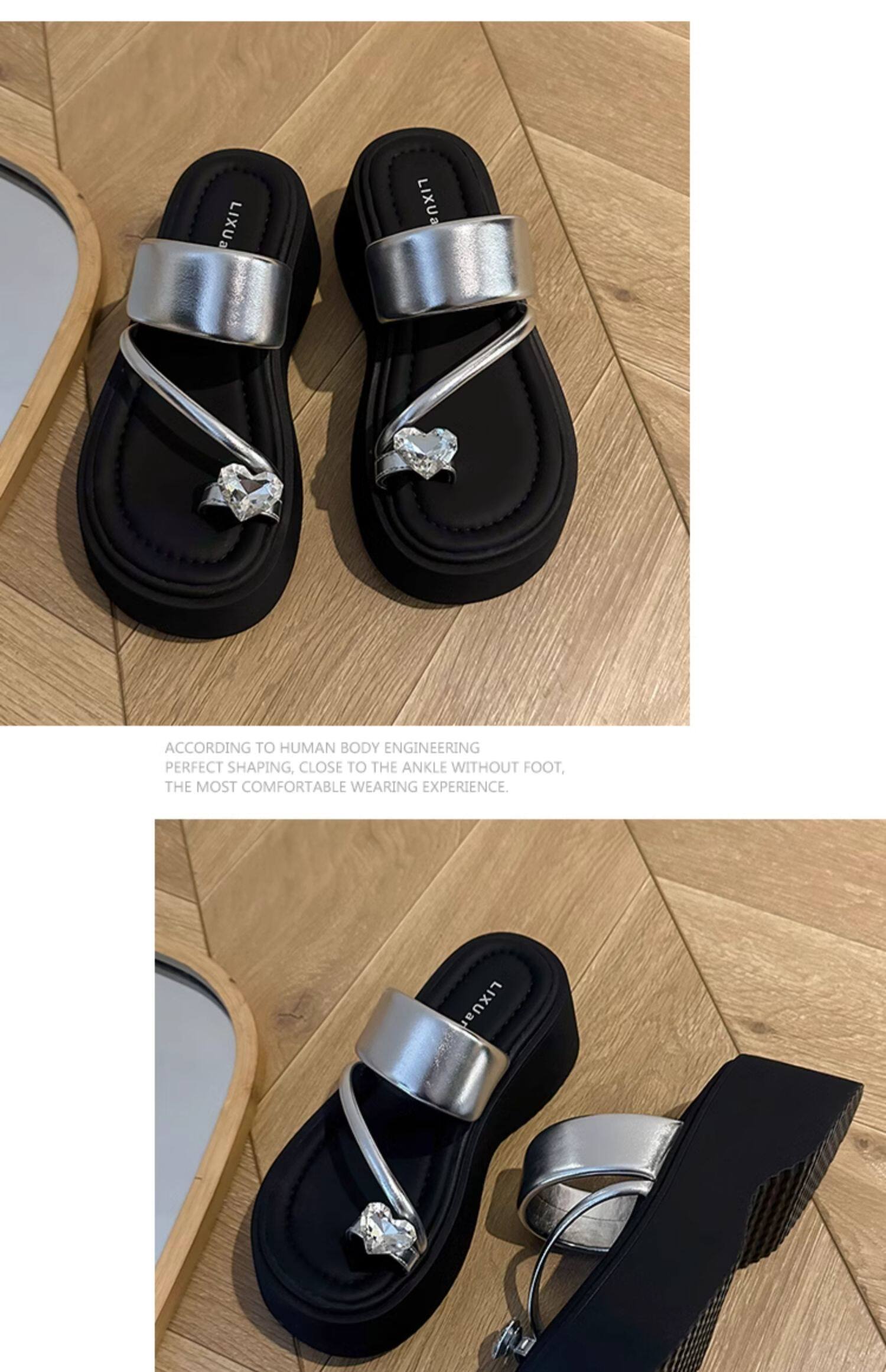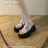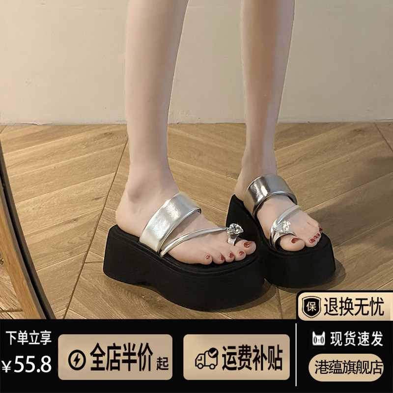 Серебряные летние тапочки, высокая пляжная обувь на платформе, изысканный стиль, подходит для подростков