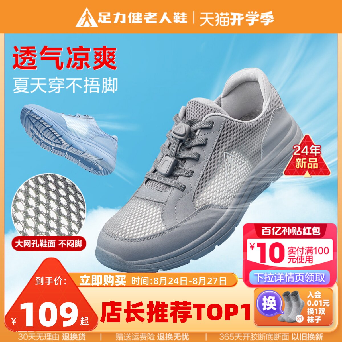足力健 Аутентичный флагманский магазин мужской обуви для пожилых людей, летней спортивной обуви с дышащей сеткой, повседневной обуви для пап среднего и пожилого возраста.