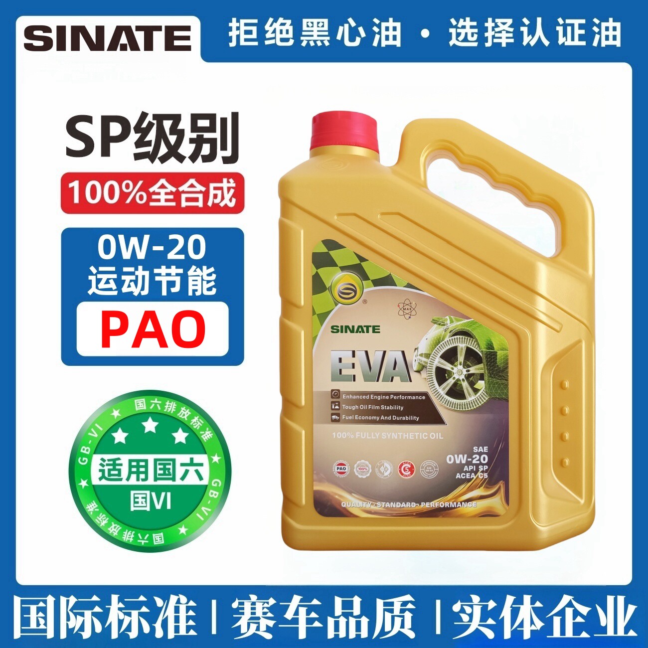 Сингапур SNET EVA 100% полностью синтезированный PAO Engine Oil SP C5 National VI Стандарт 0W20 Смазочное масло 4