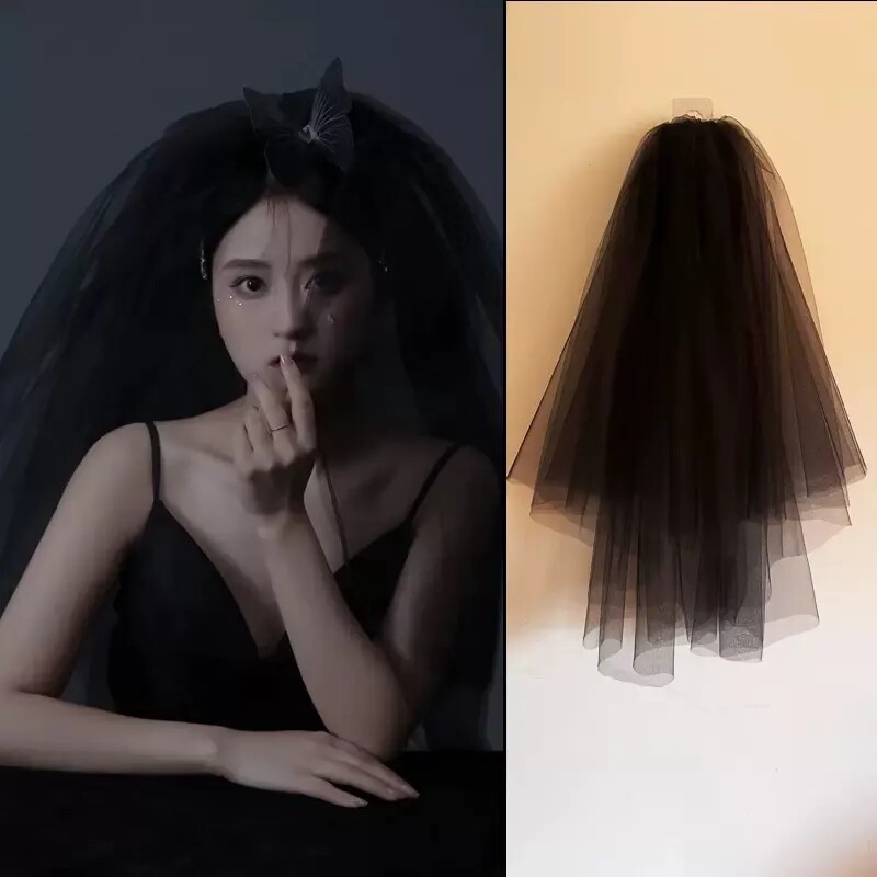 Черный аксессуар для волос с бантиком, повязка на голову для невесты, xэллоуин