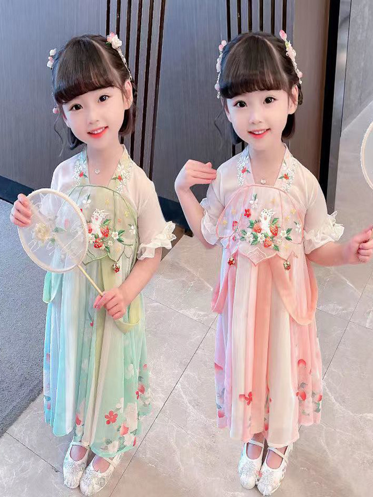 Летнее ханьфу, шифоновое детское платье для девочек, китайский стиль