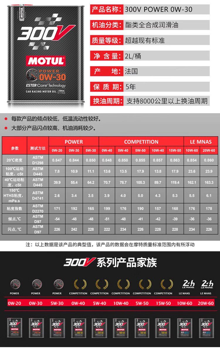| Классификация цветов: | 300V POWER 0W-20 2L, 300V POWER 0W-30 2L, 300V POWER 5W-30 2L, 300V COMPETITION 0W-40 2L, 300V COMPETITION 5W-40 2L |