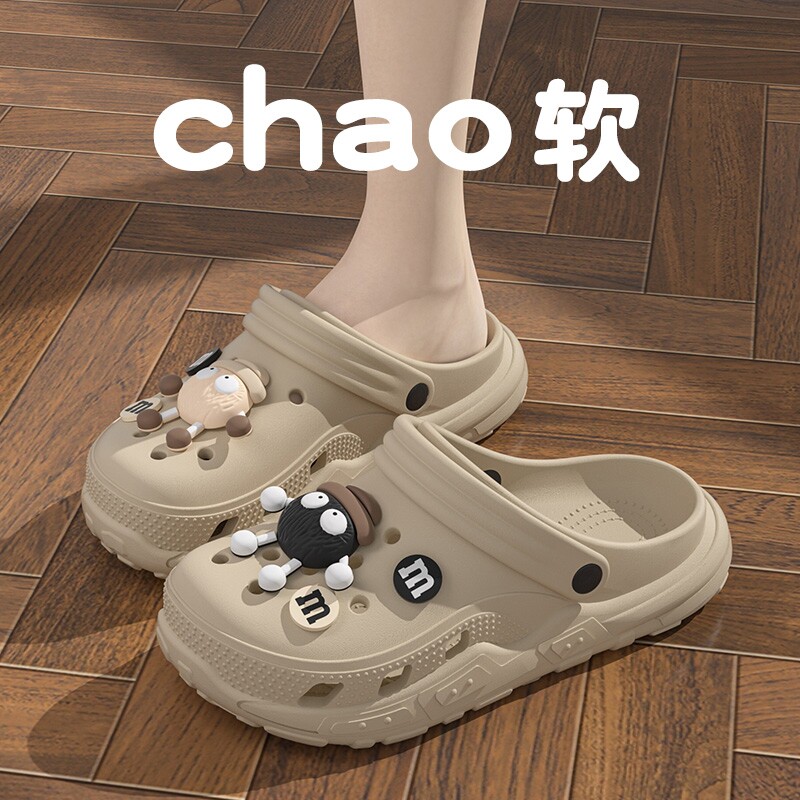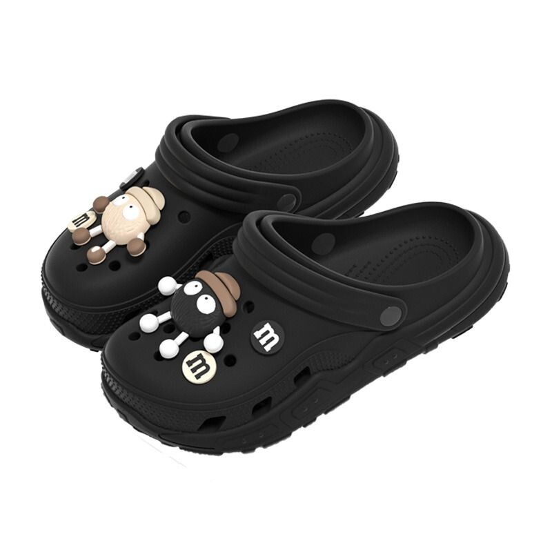 Нескользящие сабо с угольными шариками для женской верхней одежды. Новинка 2026 года, летние двойные сандалии на толстой подошве для женщин, черно-белые.