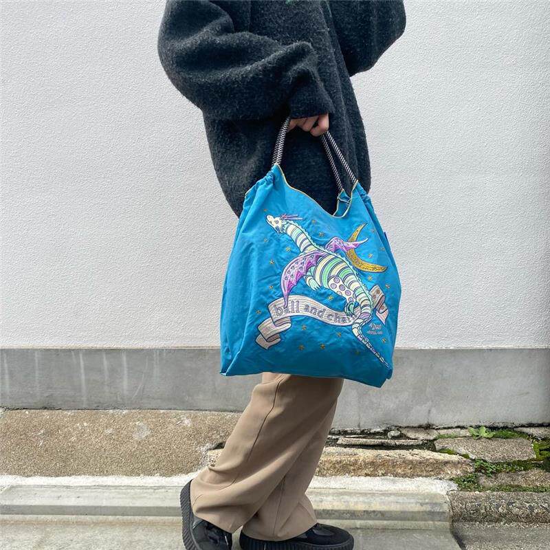 Японская сумка через плечо, вместительный и большой шоппер на одно плечо, с вышивкой