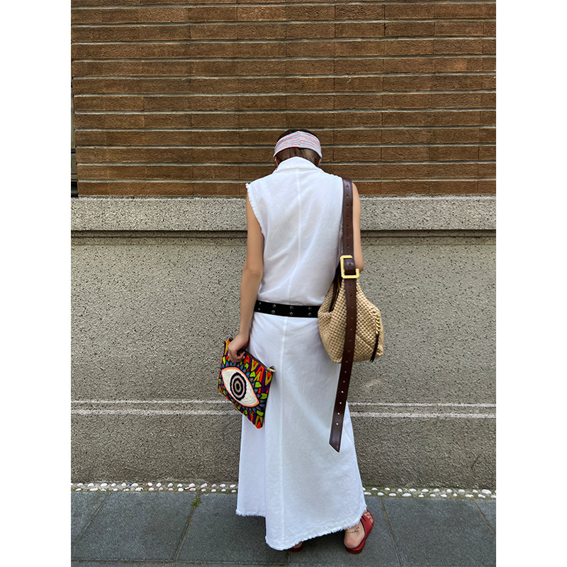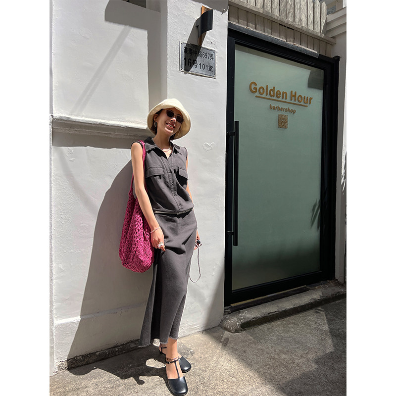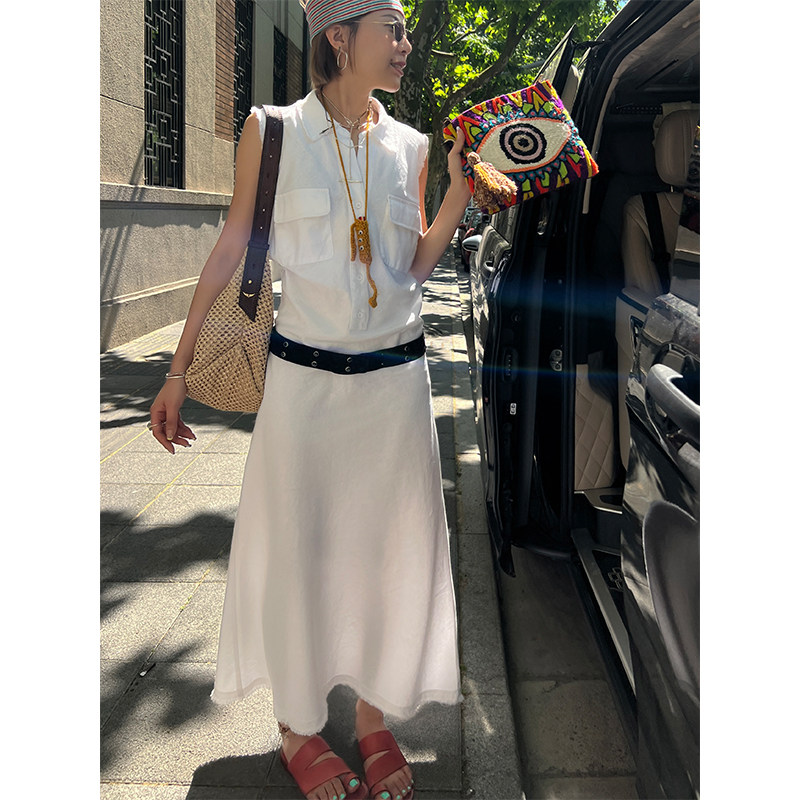 Тонкая летняя длинная юбка без рукавов, платье без рукавов, французский стиль, яркий броский стиль, изысканный стиль, свободный крой
