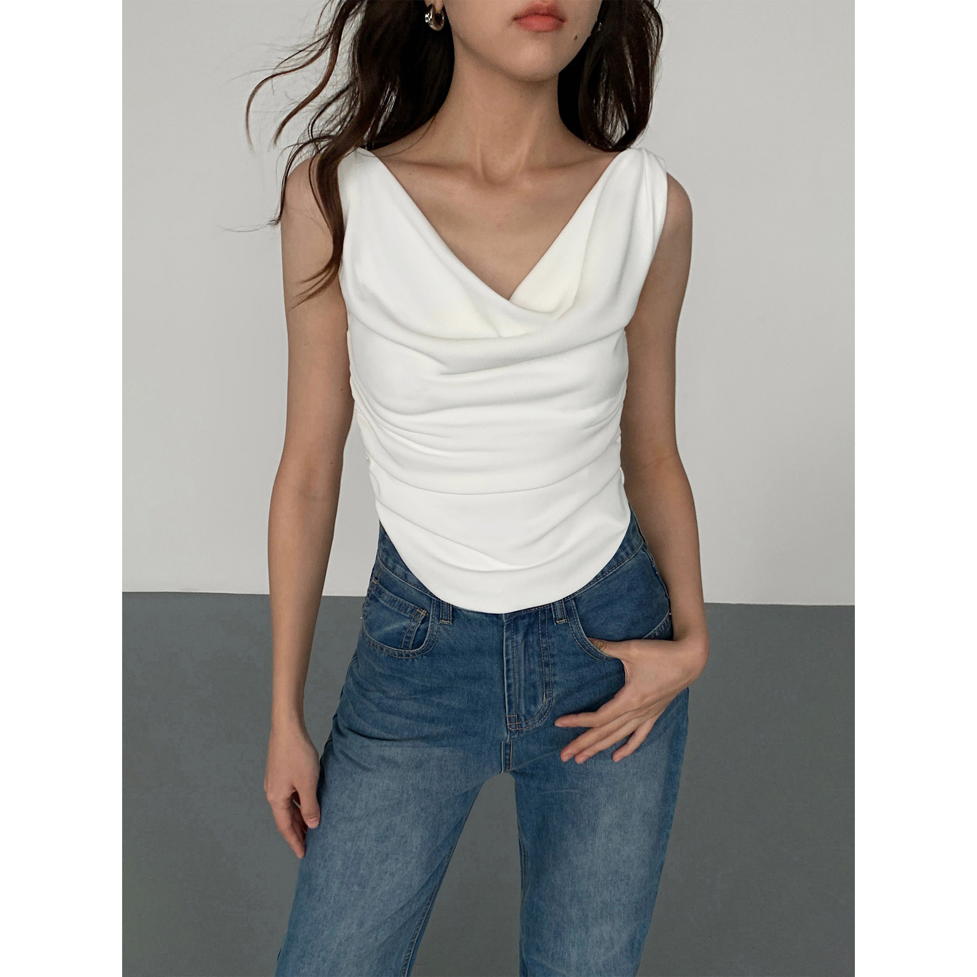 Белый жилет без рукавов, летняя короткая приталенная футболка