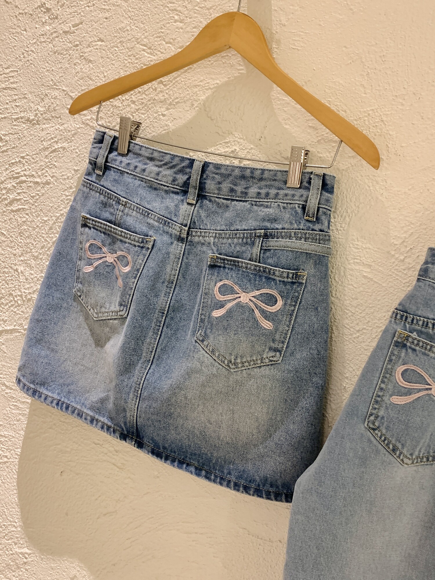 Приталенная джинсовая юбка с бантиком, с вышивкой, высокая талия, А-силуэт
