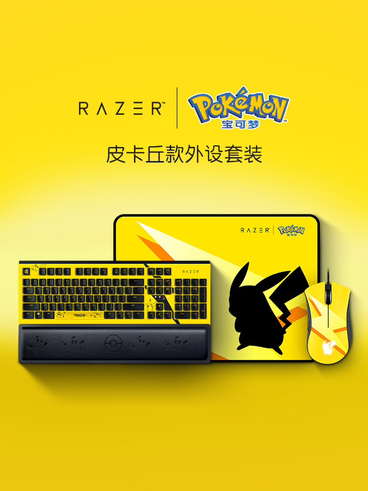 Razer Razer Pokémon Pikachu Wired Mouse Cushion Mechanal Keyboard Headphocartes Set Set Set Set Sett