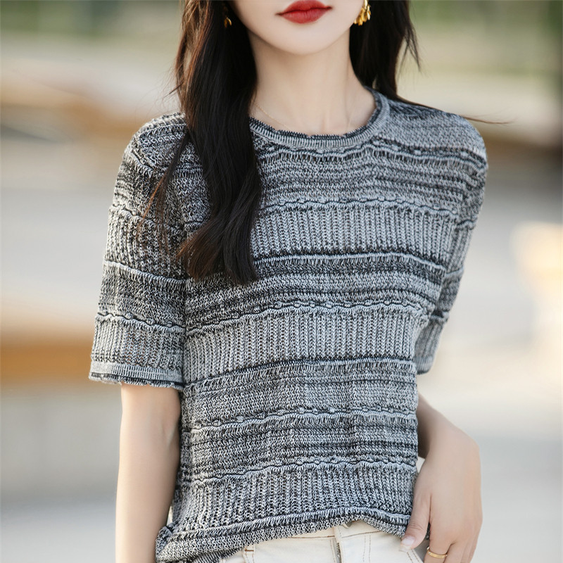 Летняя ретро хлопковая трикотажная дизайнерская футболка с круглым воротником, короткий рукав, тренд сезона, в западном стиле, из хлопка и льна