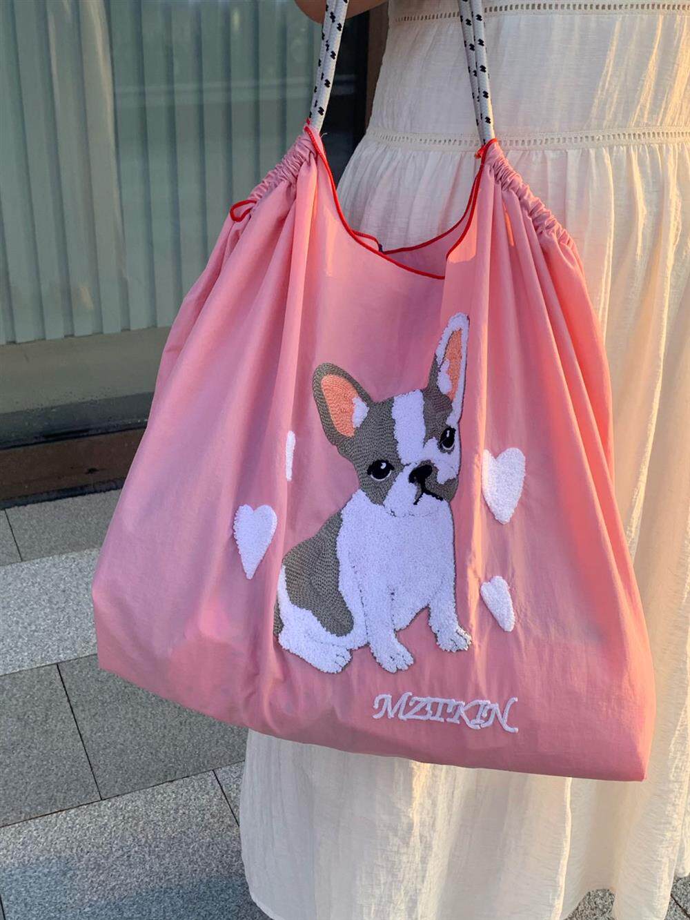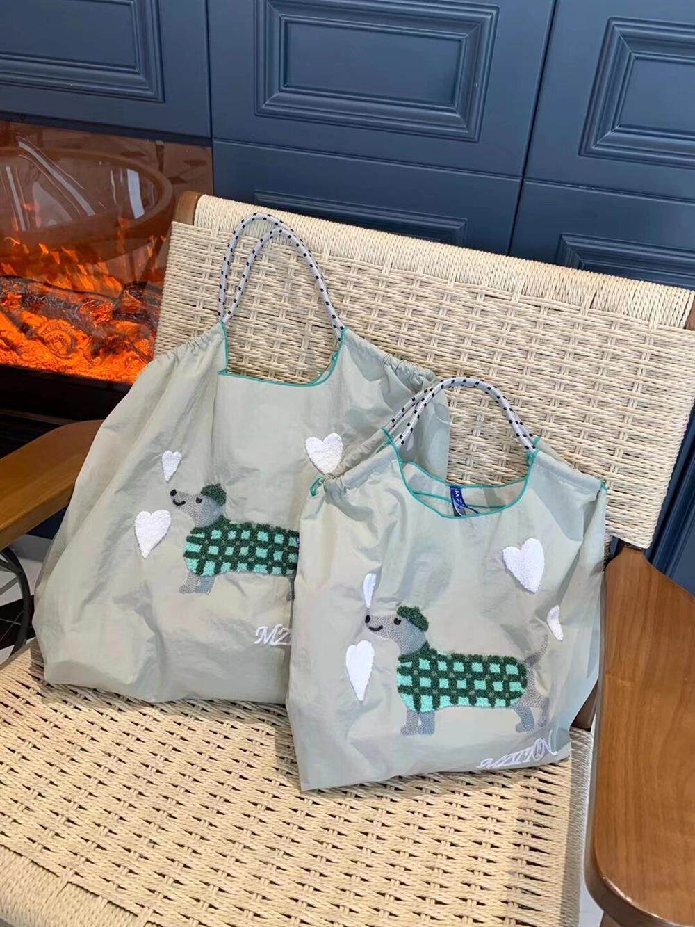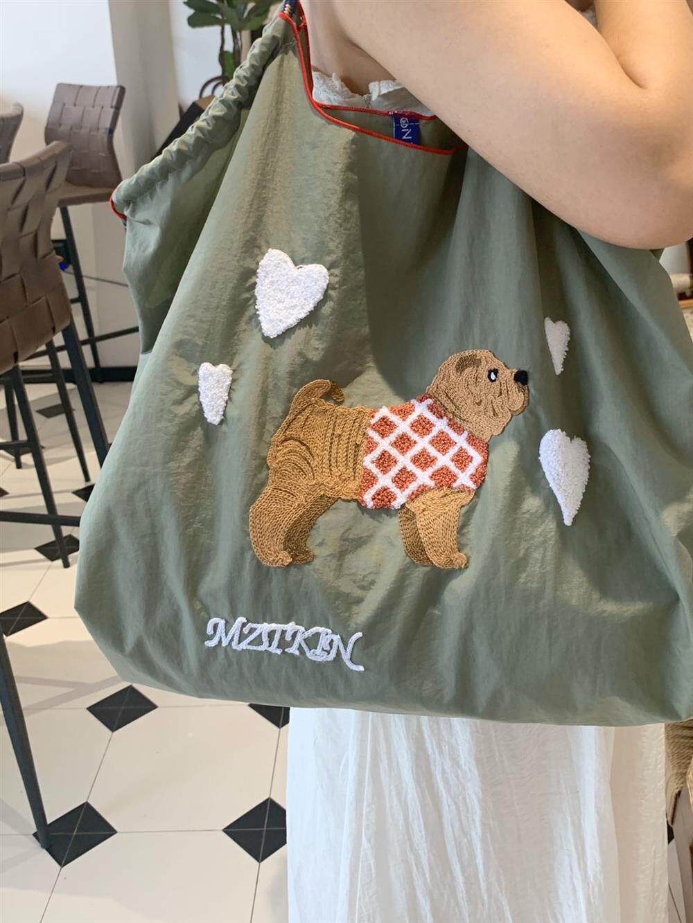 Япония купил шариковую цепочку модель модели вышитого щенка для защиты окружающей среды Сумка сумки для покупки сумки для работы в мессенджере лето
