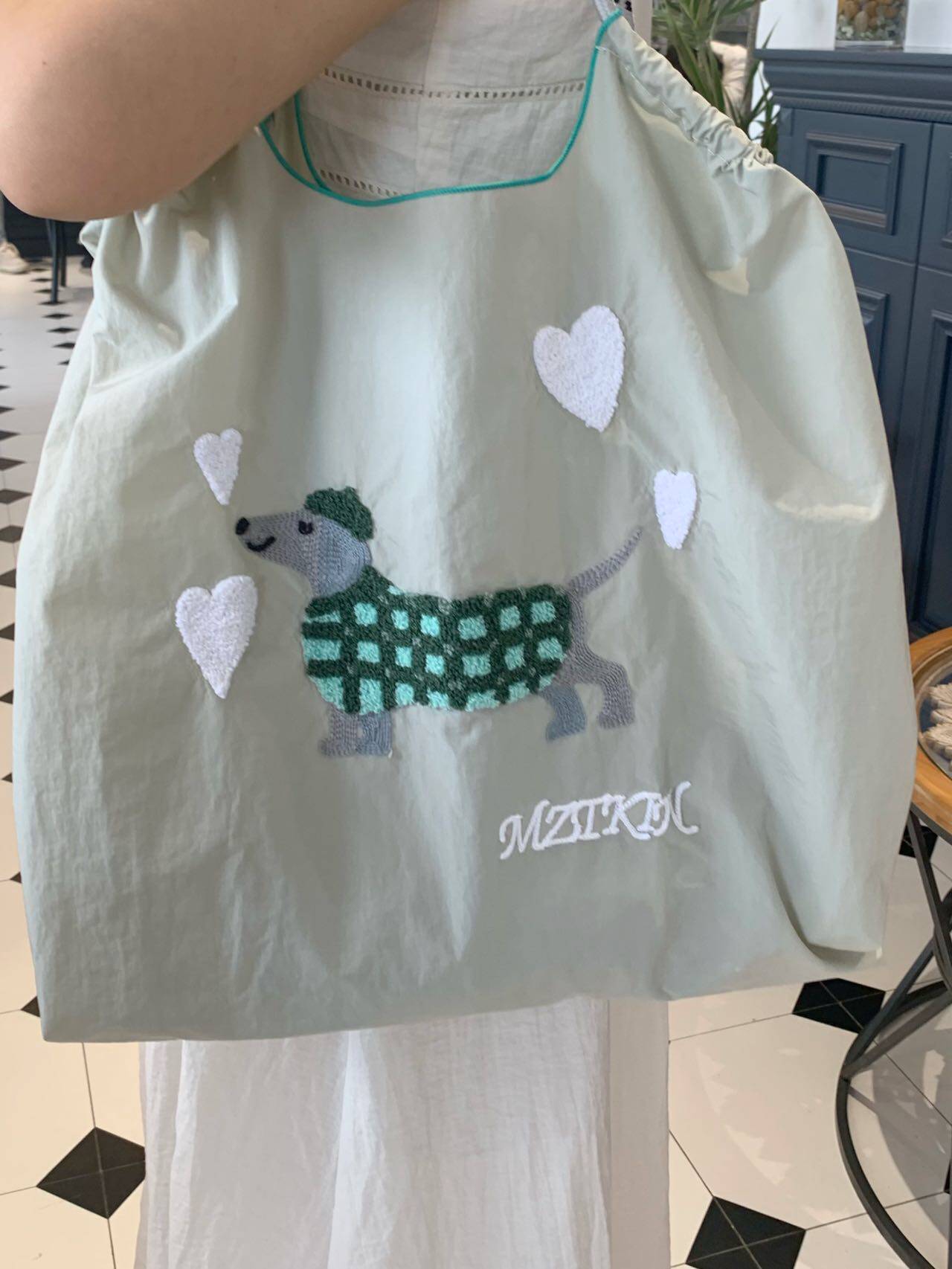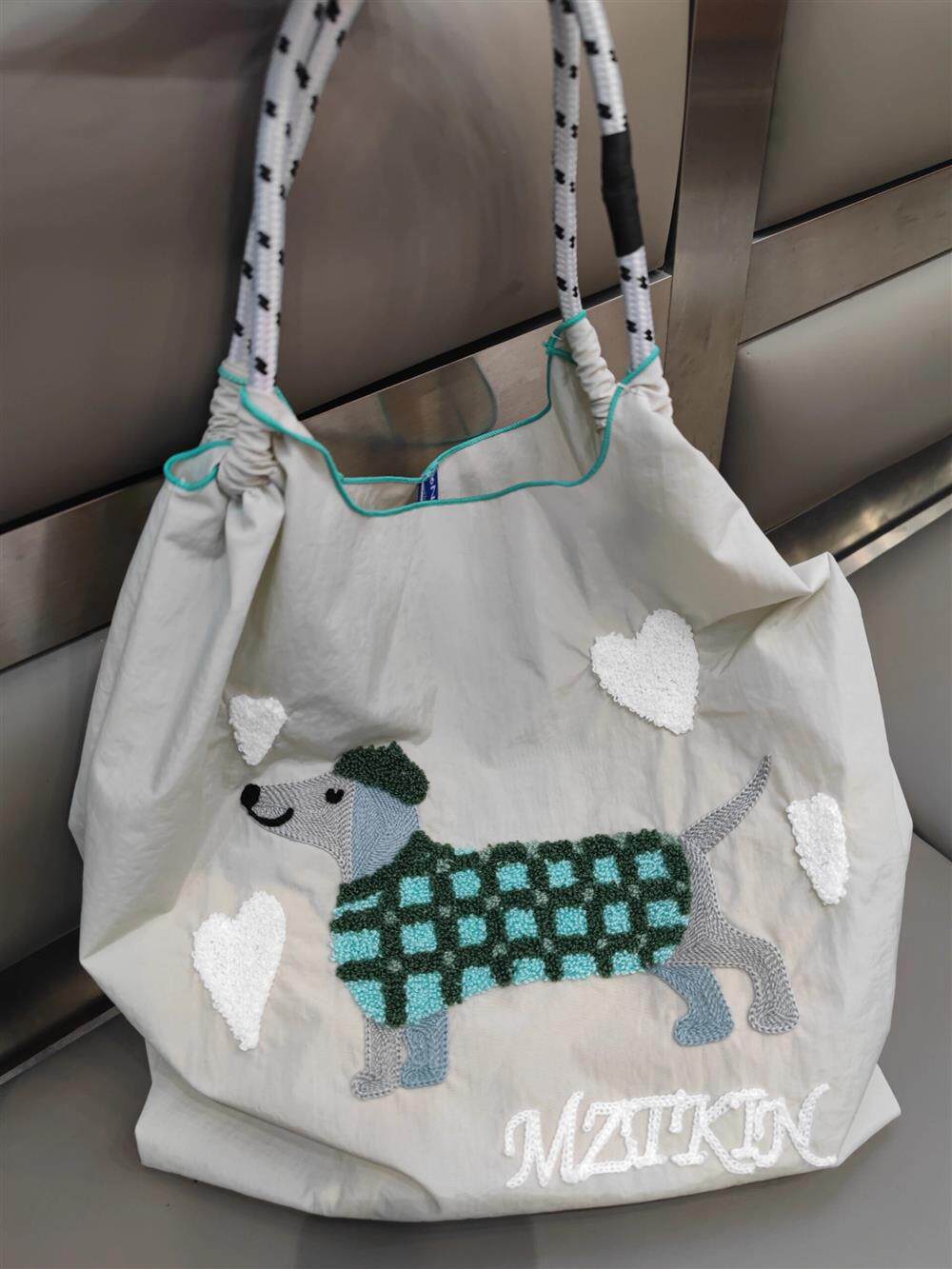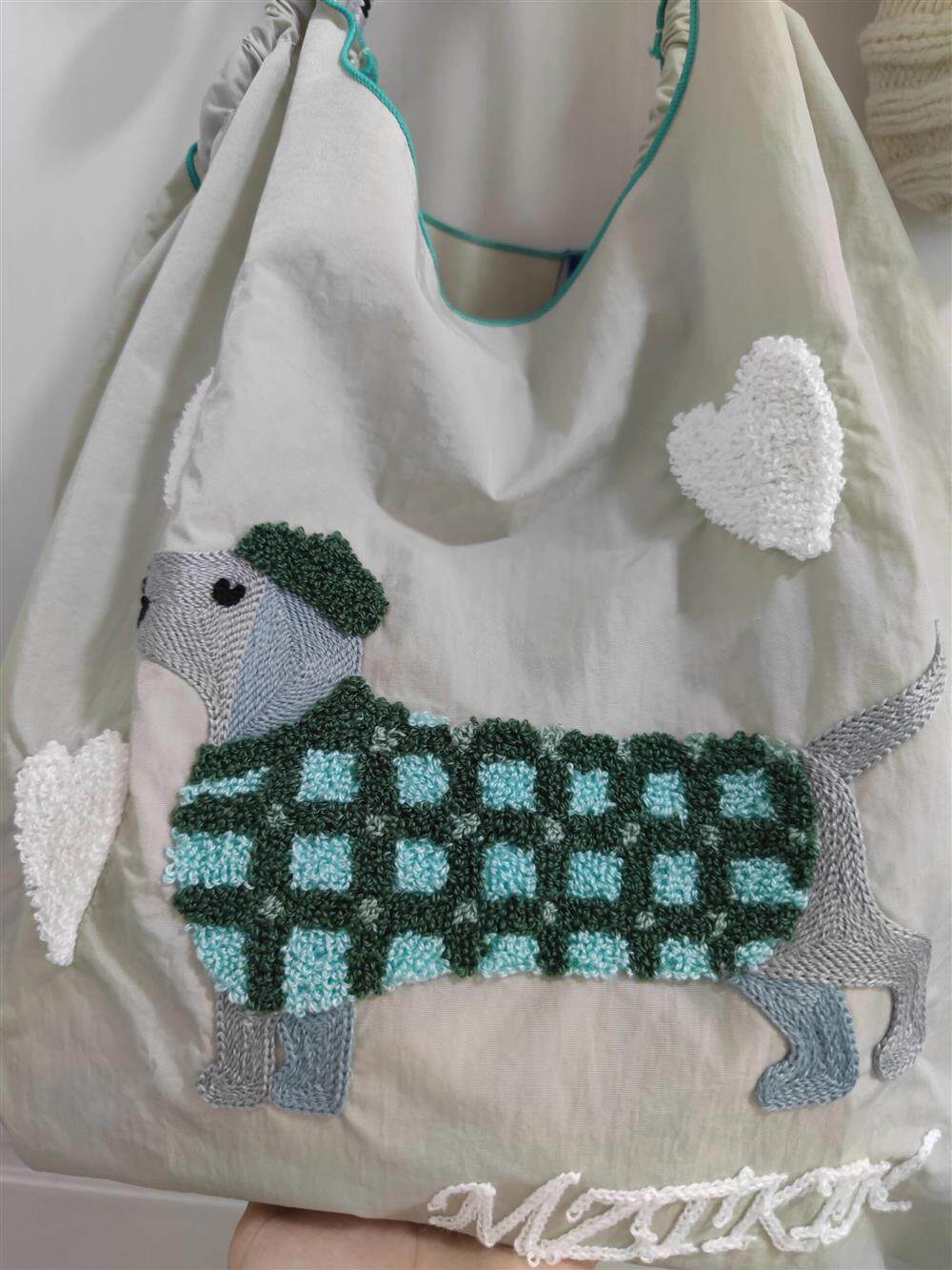 Япония купил шариковую цепочку модель модели вышитого щенка для защиты окружающей среды Сумка сумки для покупки сумки для работы в мессенджере лето