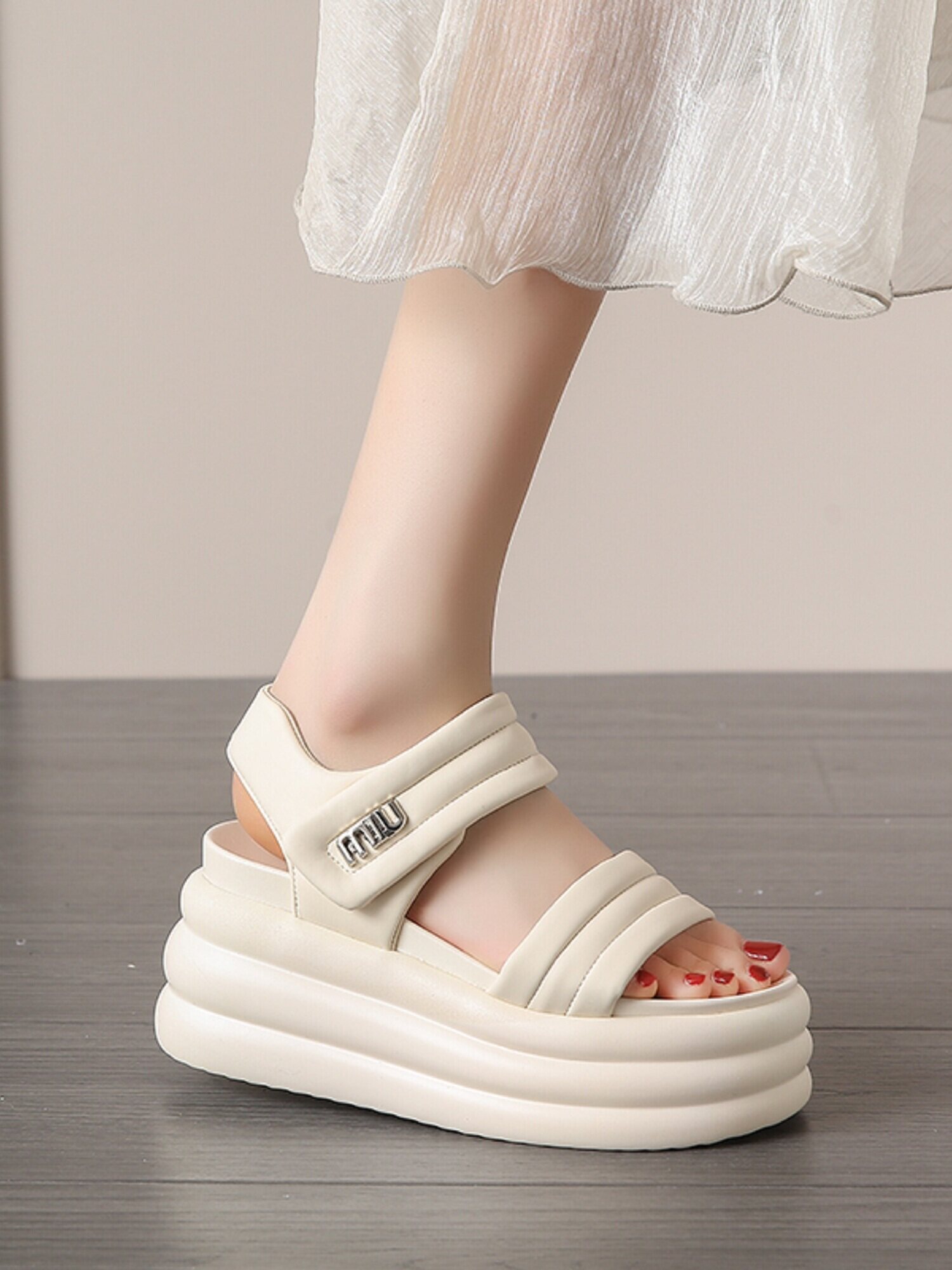 Высокие летние сандалии на платформе, пляжная обувь на липучке, 8см