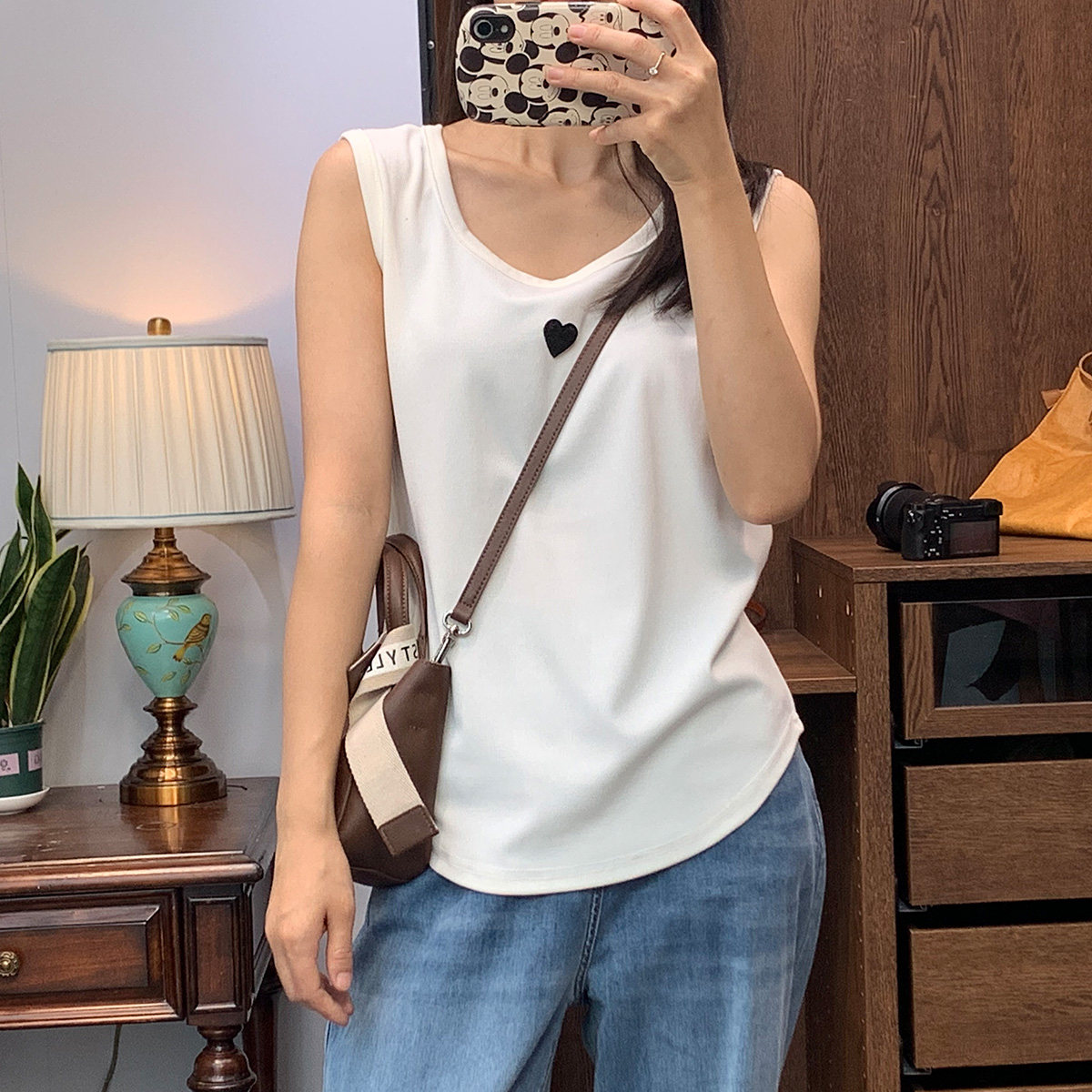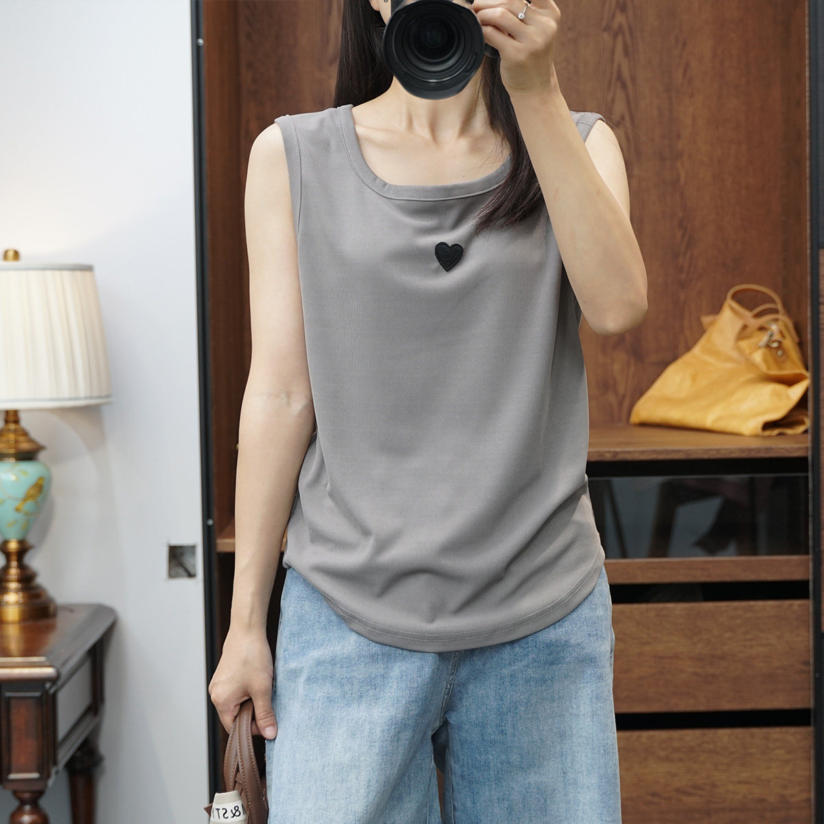 Летний эластичный базовый жилет без рукавов, большой размер, в корейском стиле, с вышивкой, эффект подтяжки