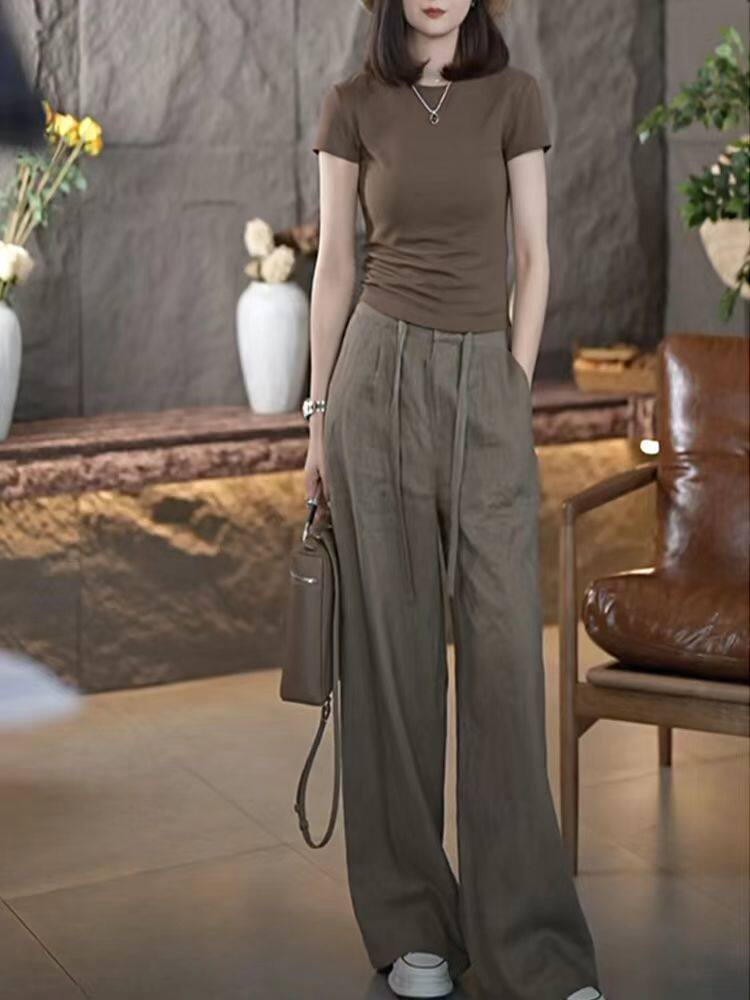 Оригинальная цветная универсальная футболка, штаны, простой и элегантный дизайн, высокая талия