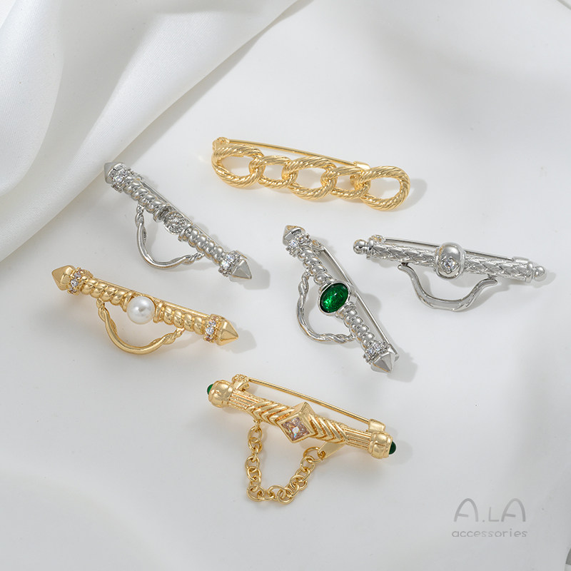 Брошь с цирконом, цепь, подвеска из жемчуга, булавка, аксессуары, 14 карат, DIY