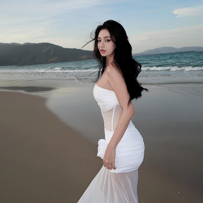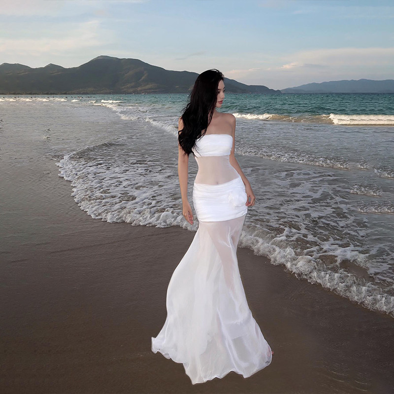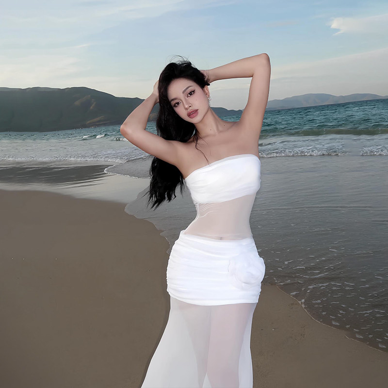 Трехмерное платье без рукавов, французский стиль, в цветочек, с акцентом на бедрах
