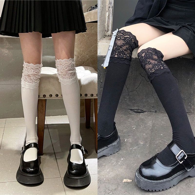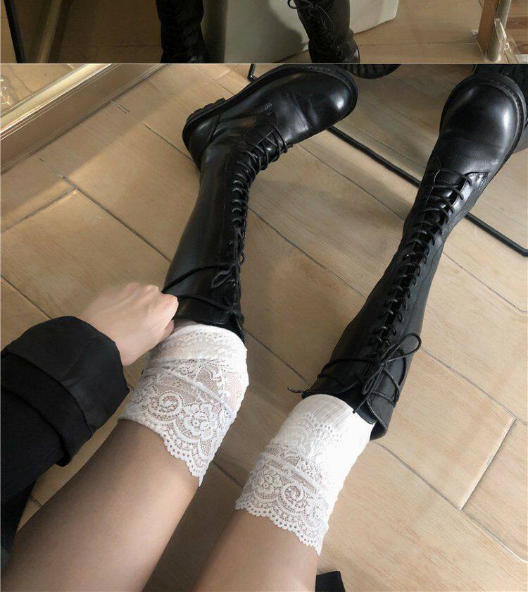Высокие сапоги, японские кружевные колготки, белые гольфы, средней длины