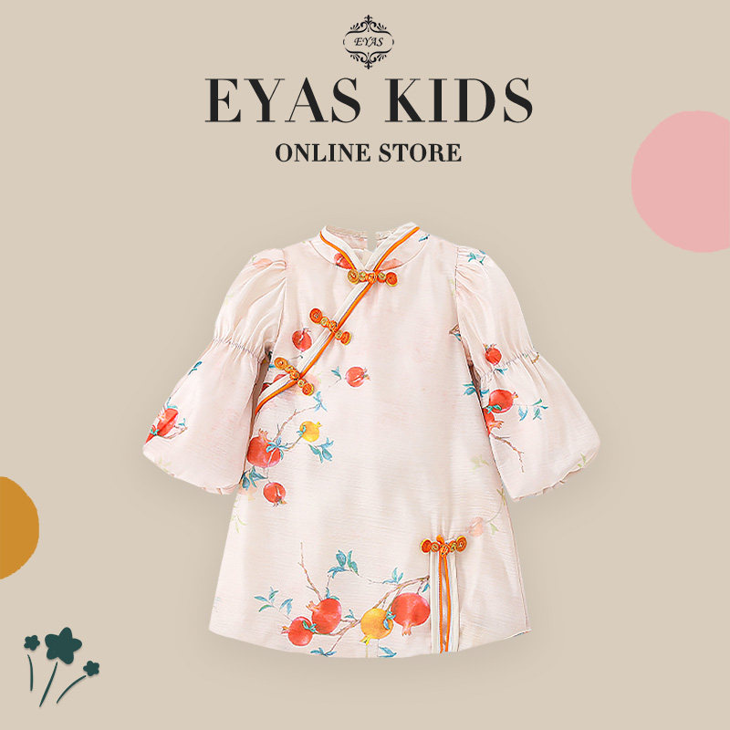 EYAS Весеннее ципао, тонкое платье, рукава фонарики, тренд сезона, китайский стиль