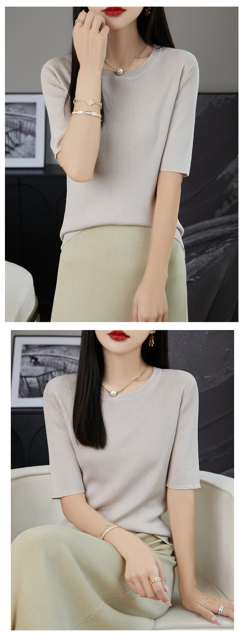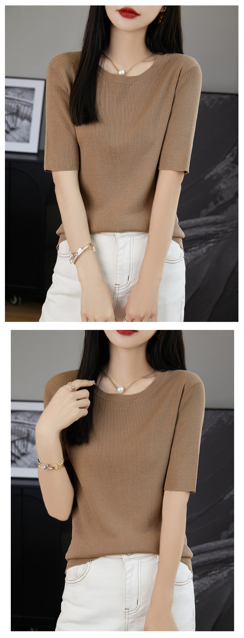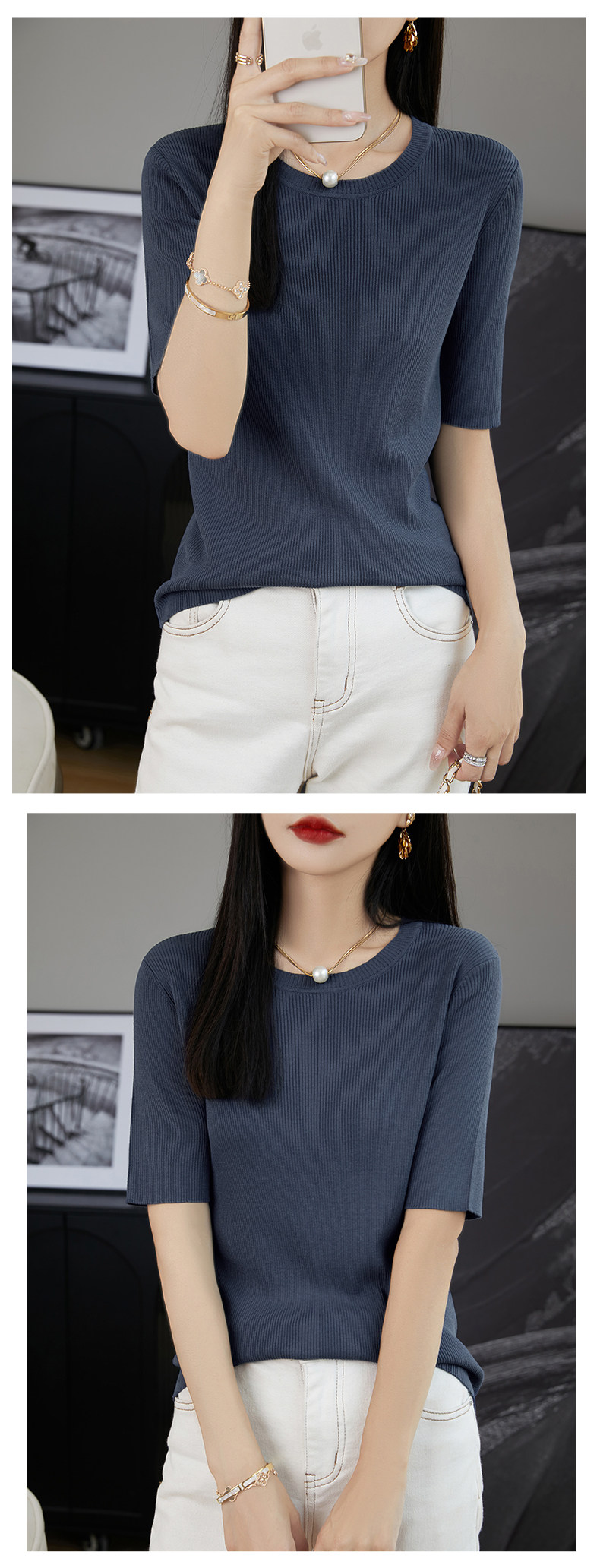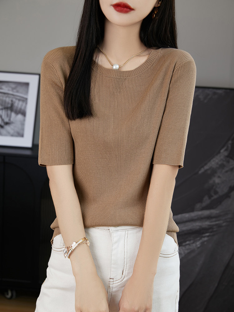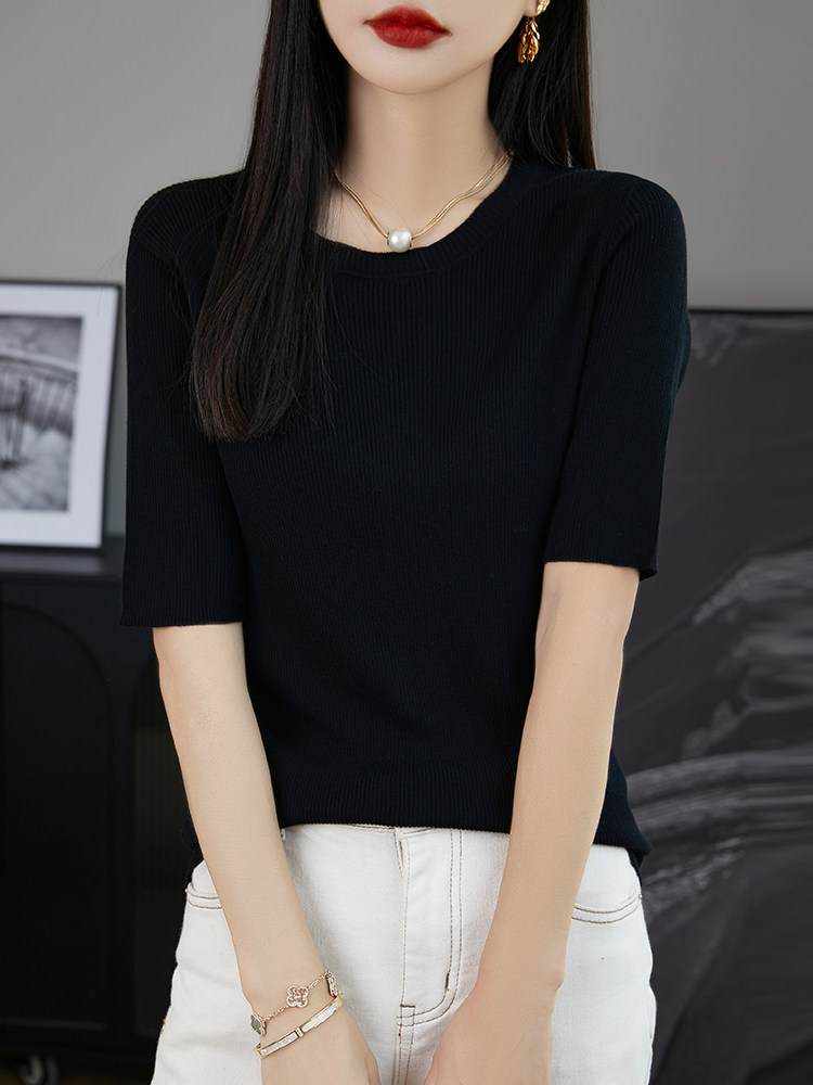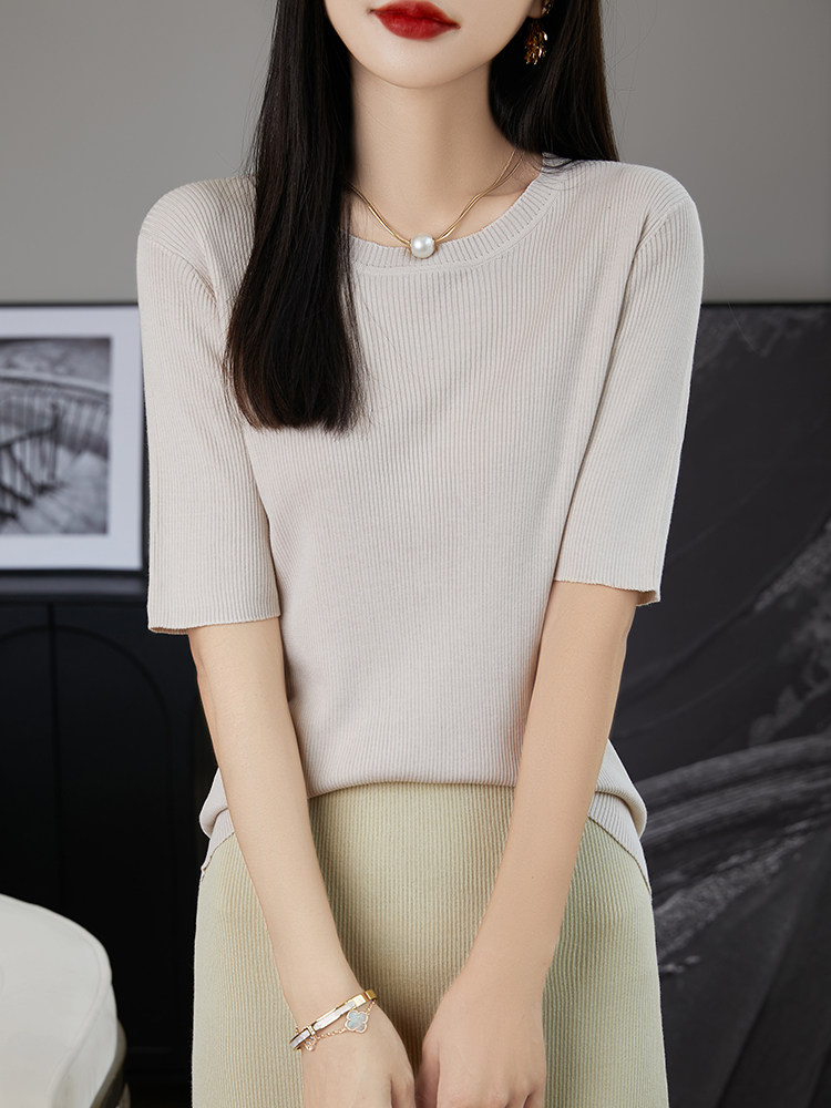 Трикотажная летняя элегантная футболка с круглым воротником