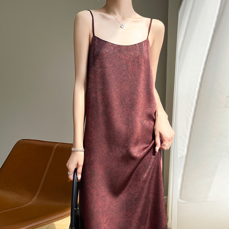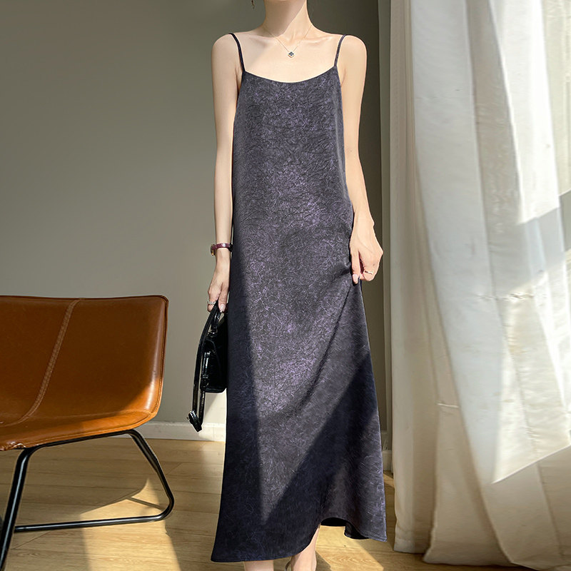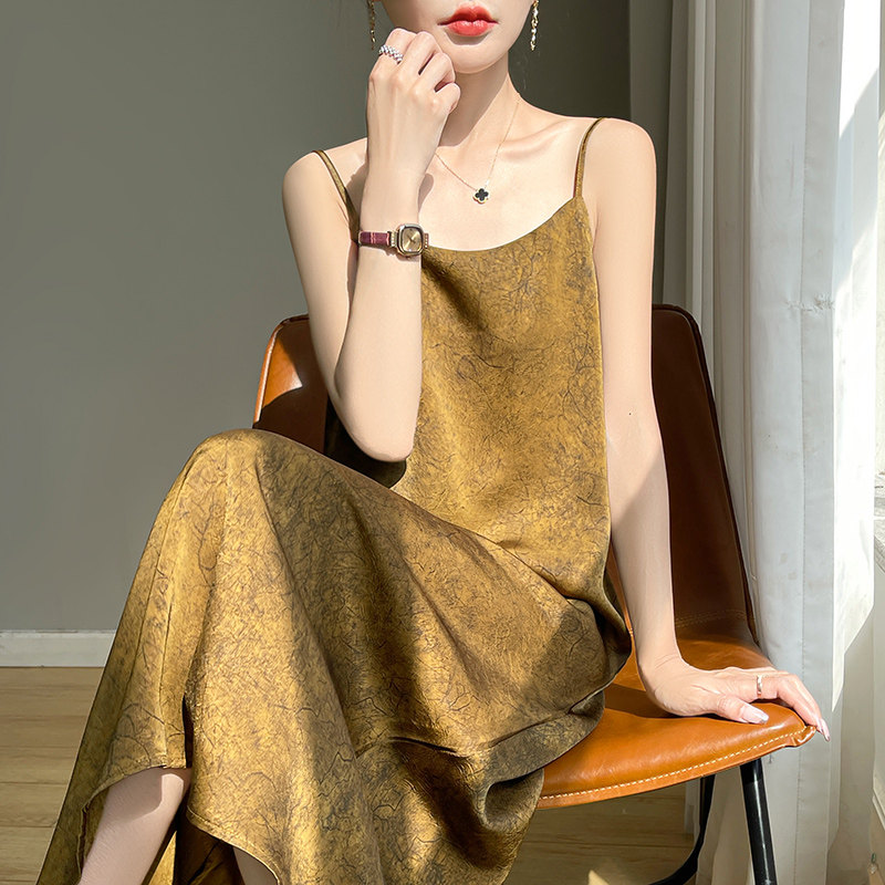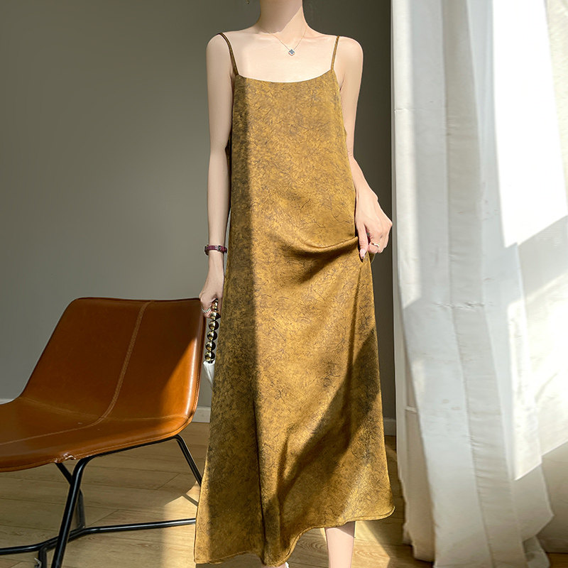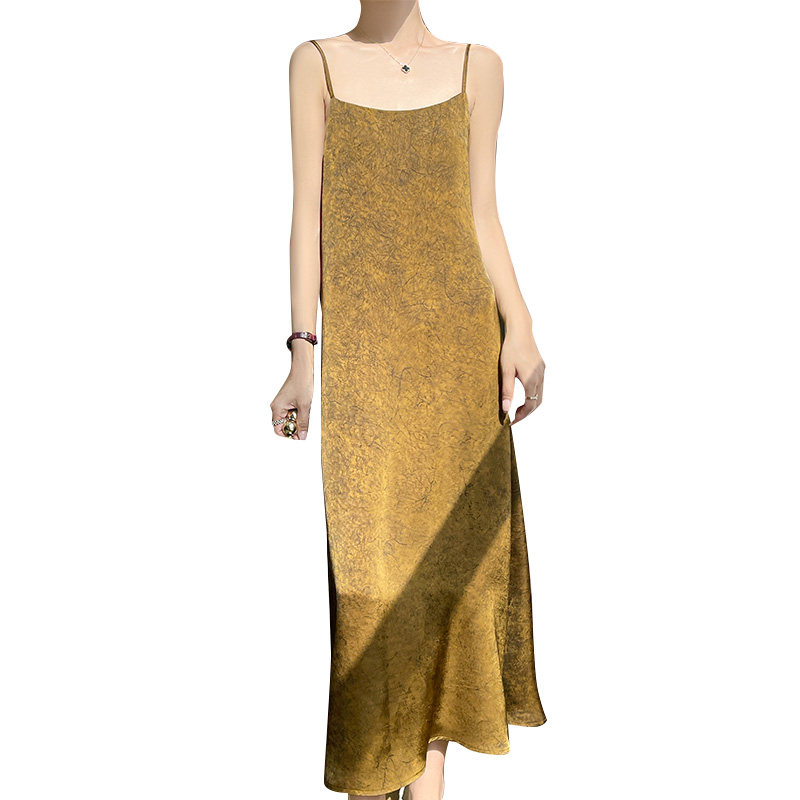 Платье, приталенная длинная юбка, китайский стиль, высокая талия, свободный крой, А-силуэт
