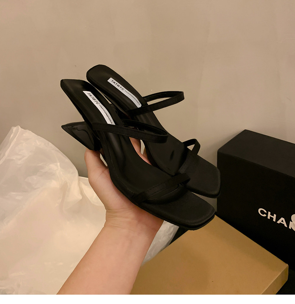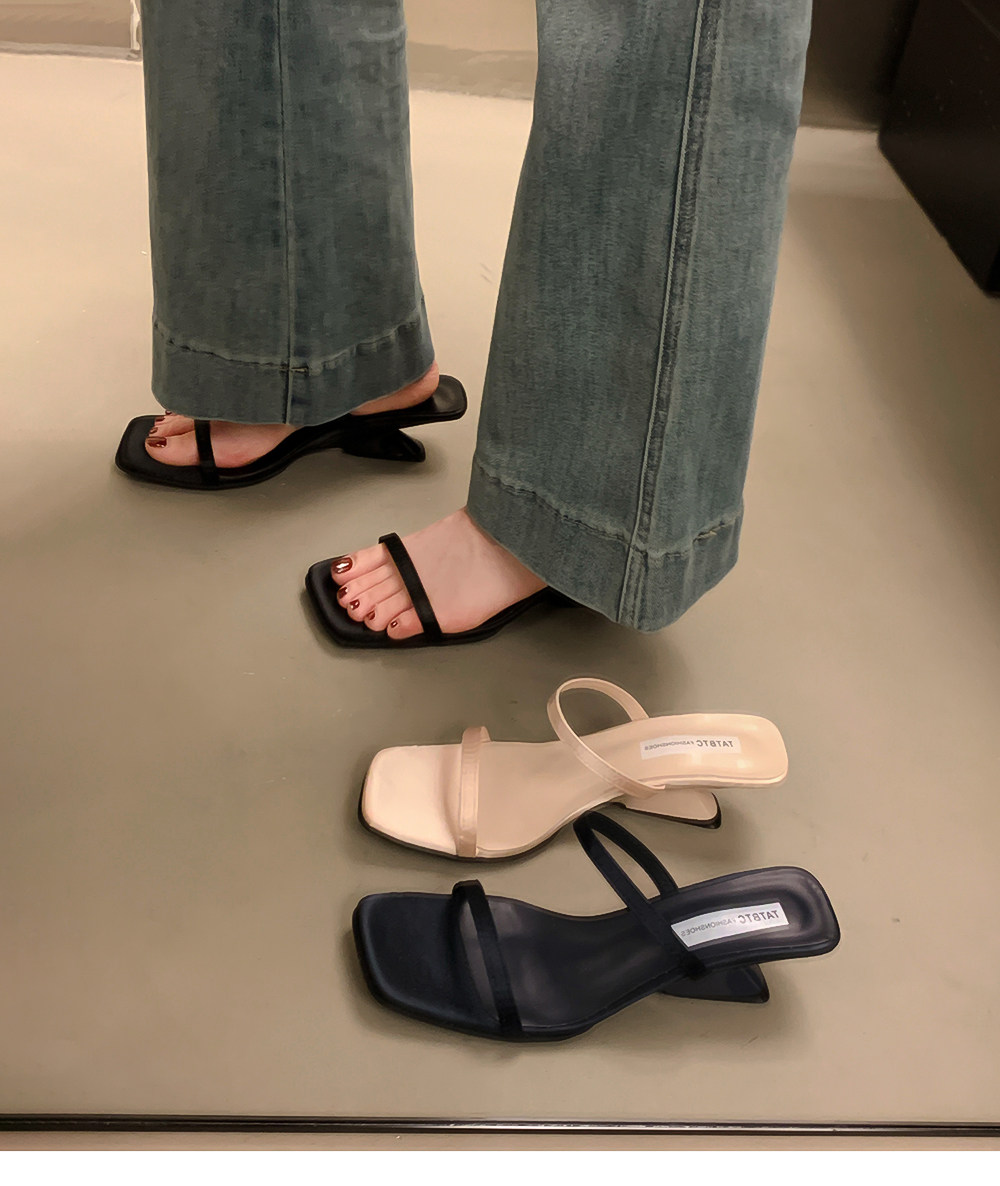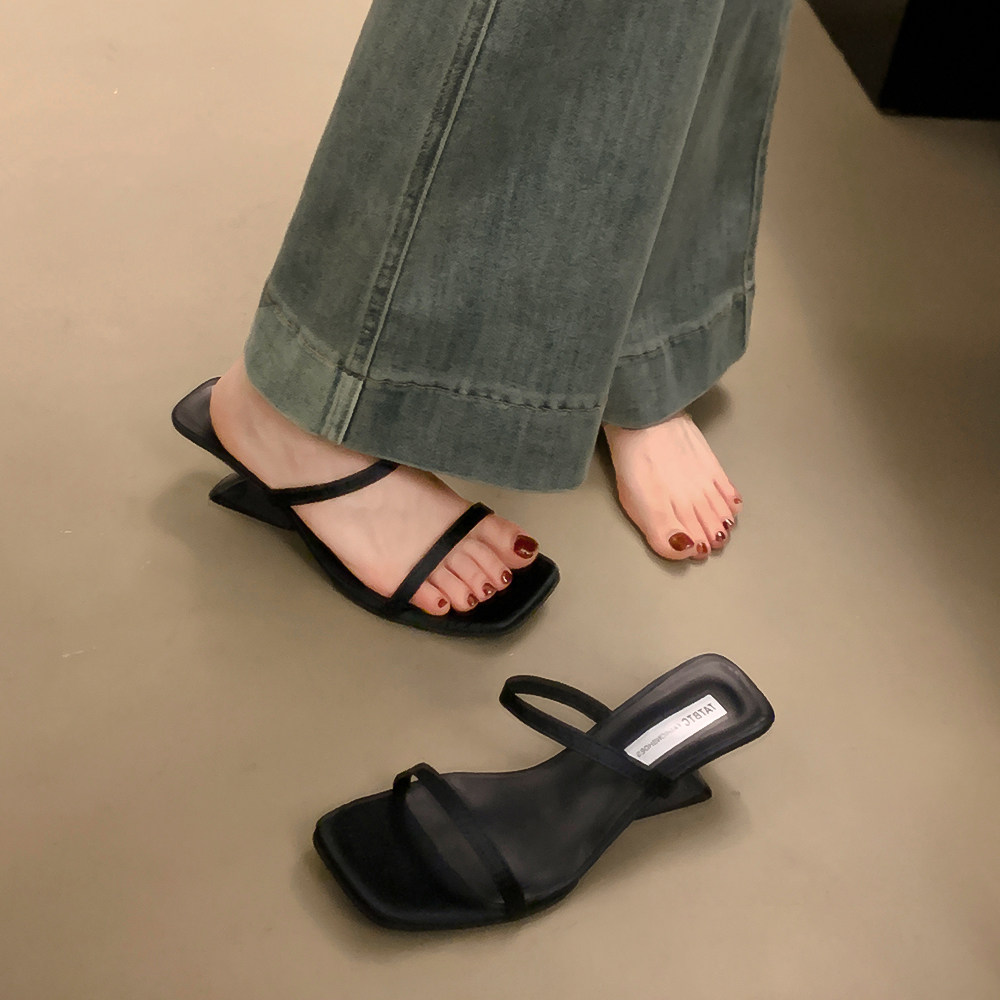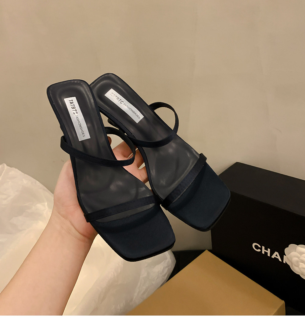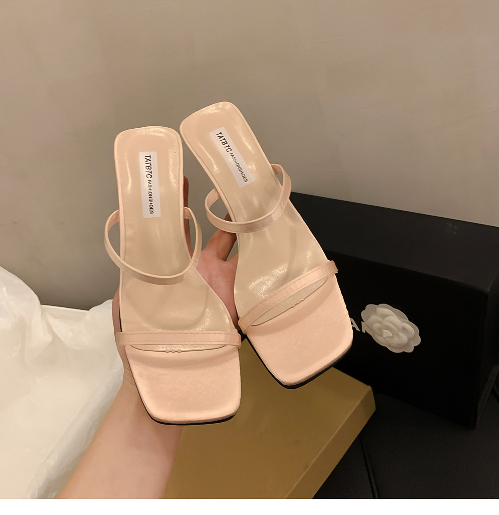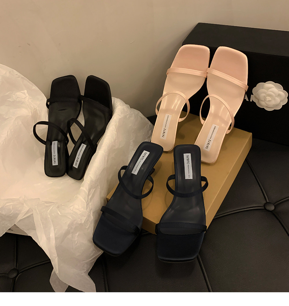 Летние тапочки, минималистичная обувь, слайдеры на высоком каблуке, популярно в интернете, тонкий ремешок