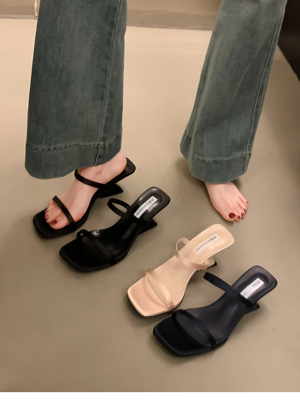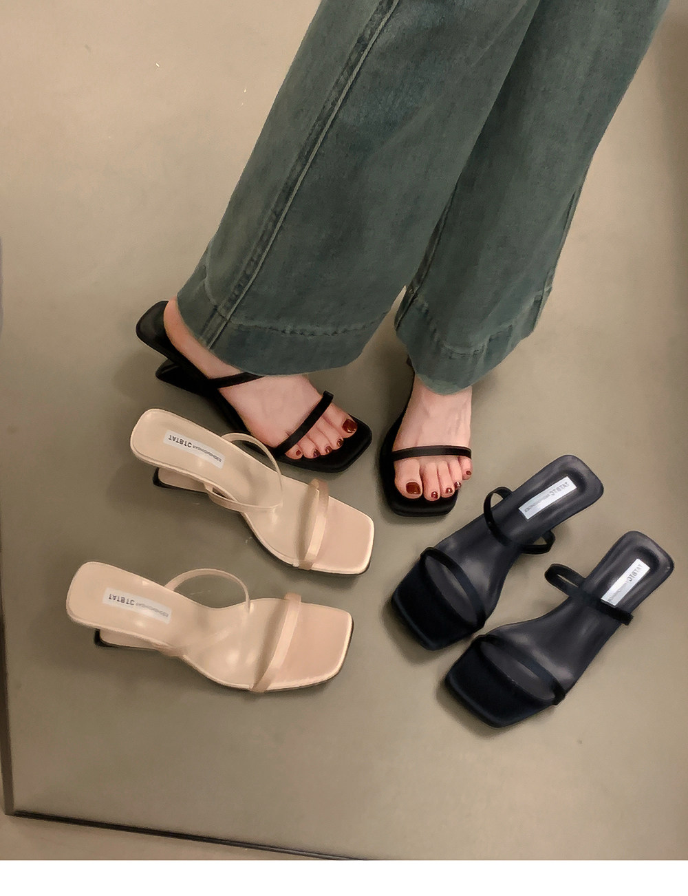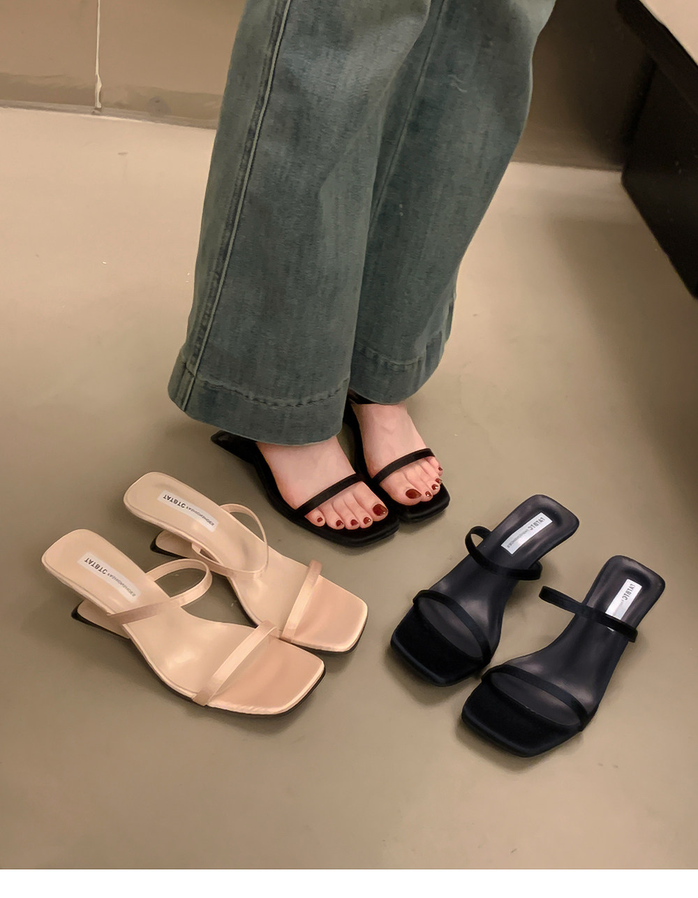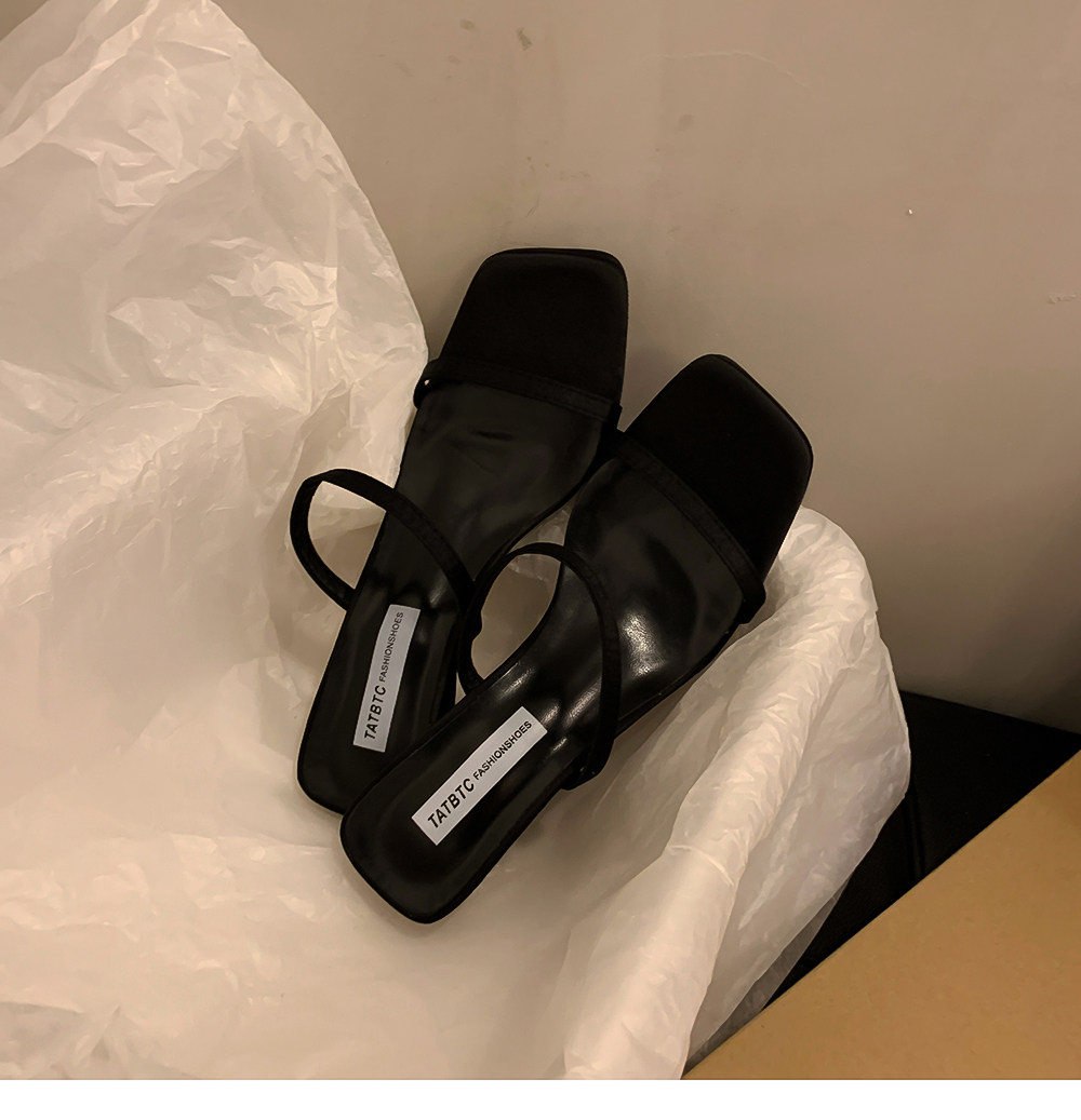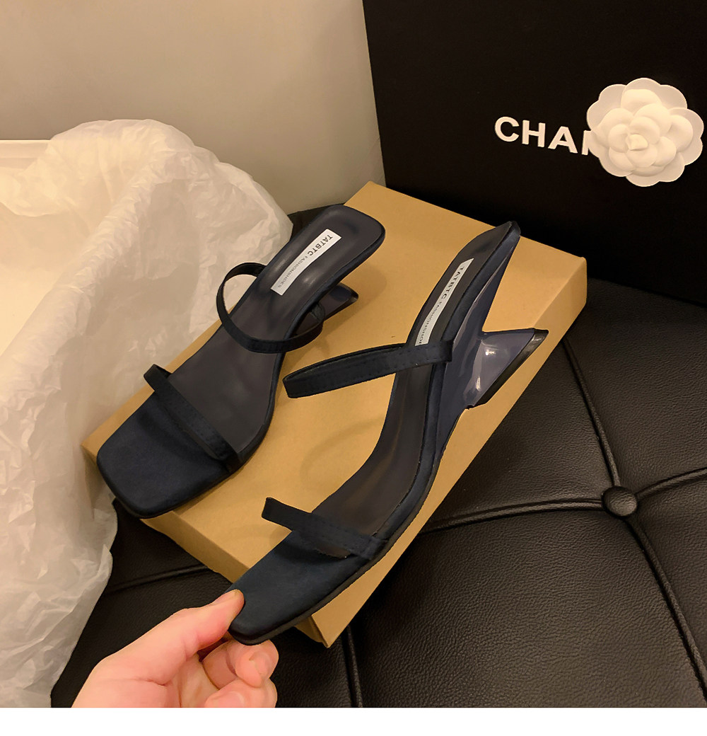 Летние тапочки, минималистичная обувь, слайдеры на высоком каблуке, популярно в интернете, тонкий ремешок